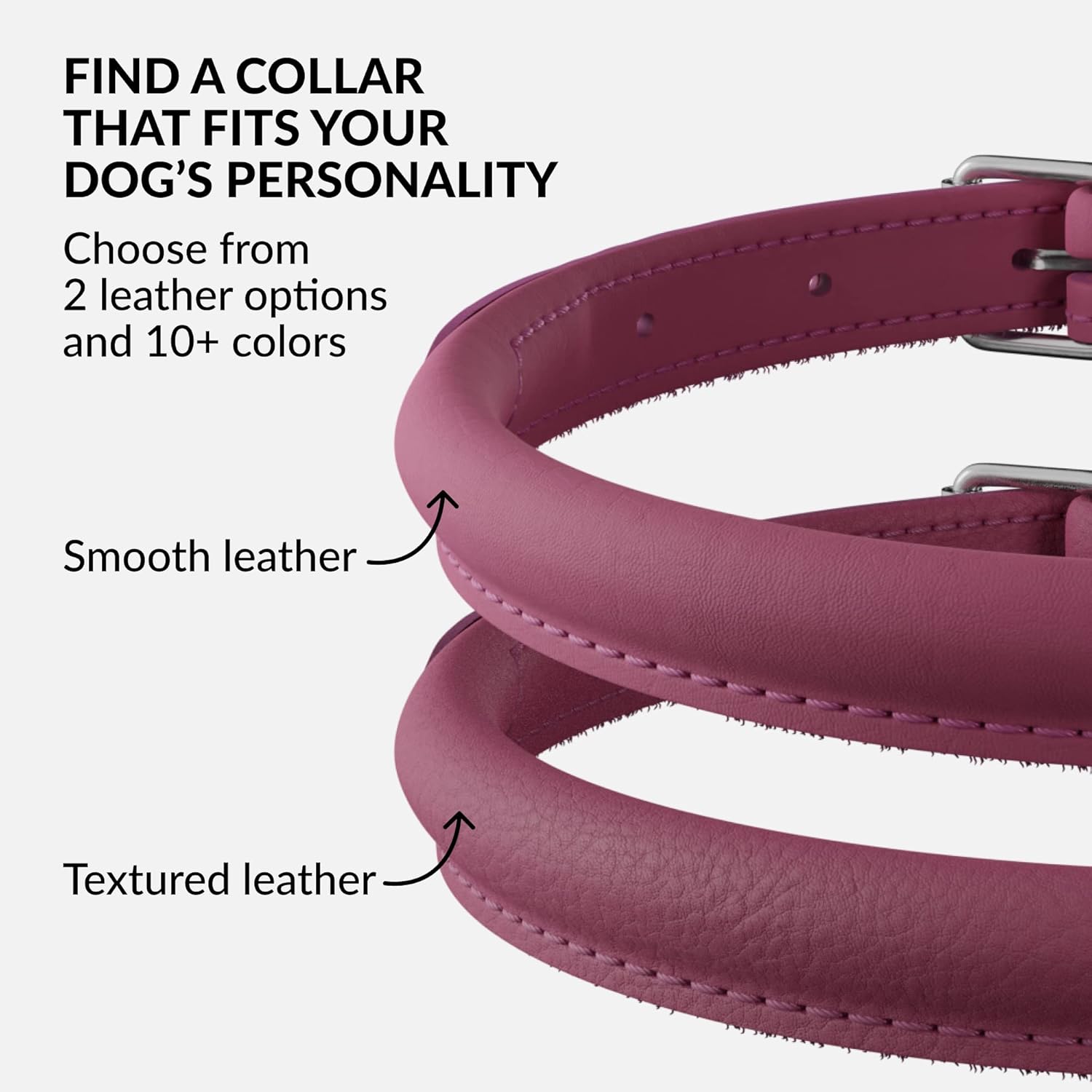 CollarDirect Rolled Leather Dog Collar, Soft Padded Round Puppy Collar, Handmade Genuine Leather Collar Dog Small Large Cat Collars 13 Colors (13-16 Inch, Pink Smooth)