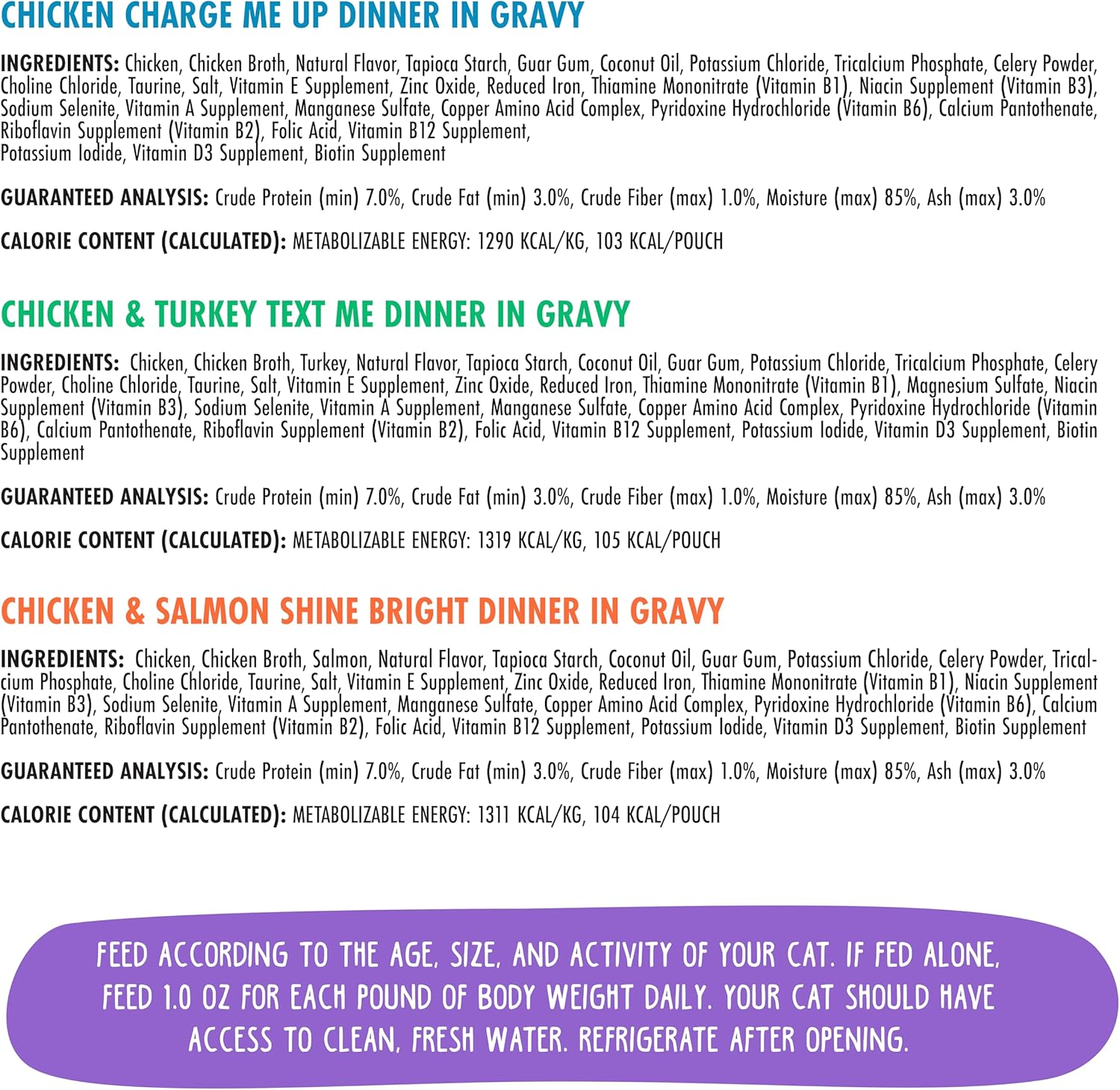 • Yippy Ki Yay Yellows! Variety Pack, 2.8oz Pouch (Pack of 12) A selection of three all natural wet cat food recipes, featuring cage-free chicken in a delicious gravy cats can’t resist!