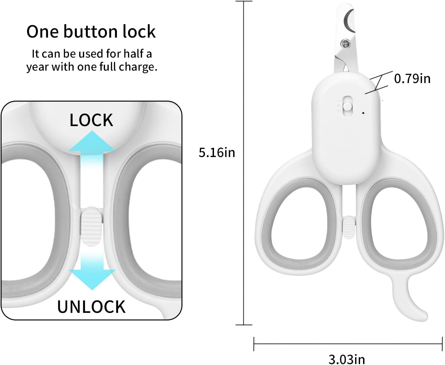 • Bright LED Light: Equipped with LED light at the end of this unique cat nail clipper. The light illuminates your pet's nails, allowing you to quickly and easily find where to cut, preventing damage to the blood vessels on your pet's nails