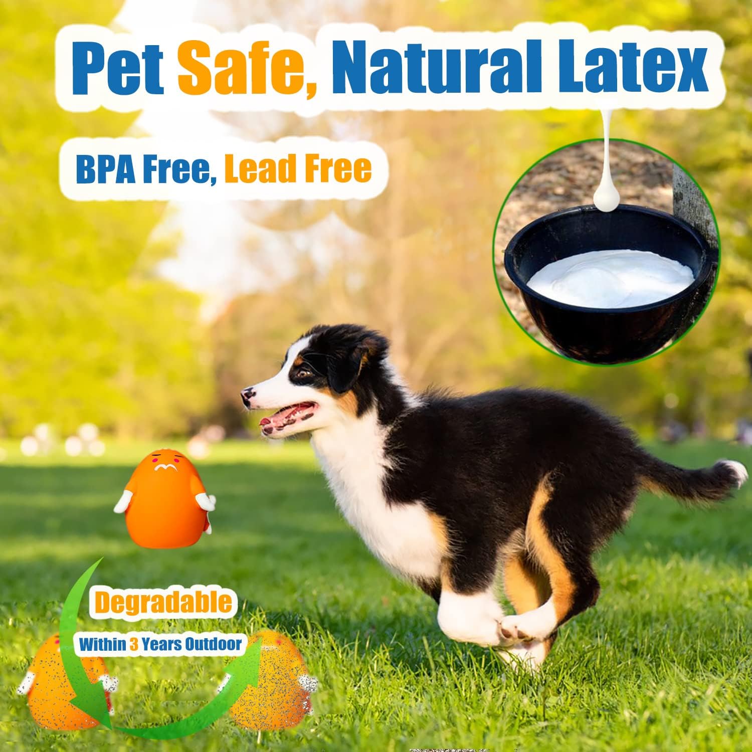 • [Safe, Natural Rubber Latex] Small squeaky Dog toys are made of natural rubber latex, non-toxic, BPA-free, and Lead-Free. The dog Squeaky balls for dogs comply with the same safety standard as childrenโ€™s toys.