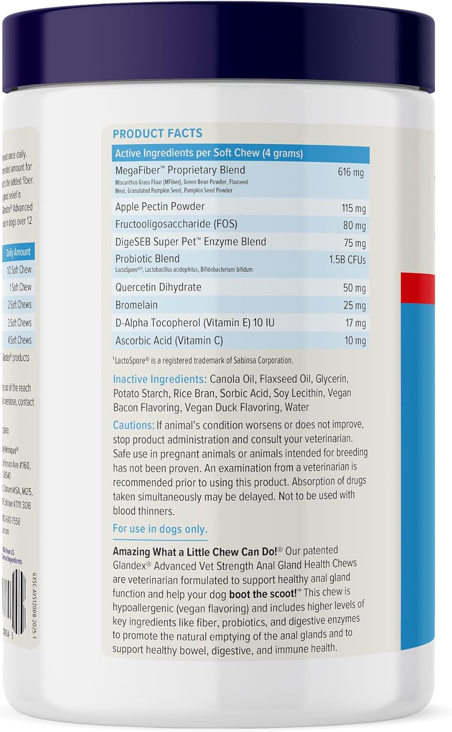 • VET STRENGTH ANAL GLAND & DIGESTIVE SUPPORT: Glandex for dogs is scientifically formulated to support healhy anal glands with Fiber, Probiotics, and more to promote digestive health and to bulk and firm dog stools. (PACKAGING MAY VARY)