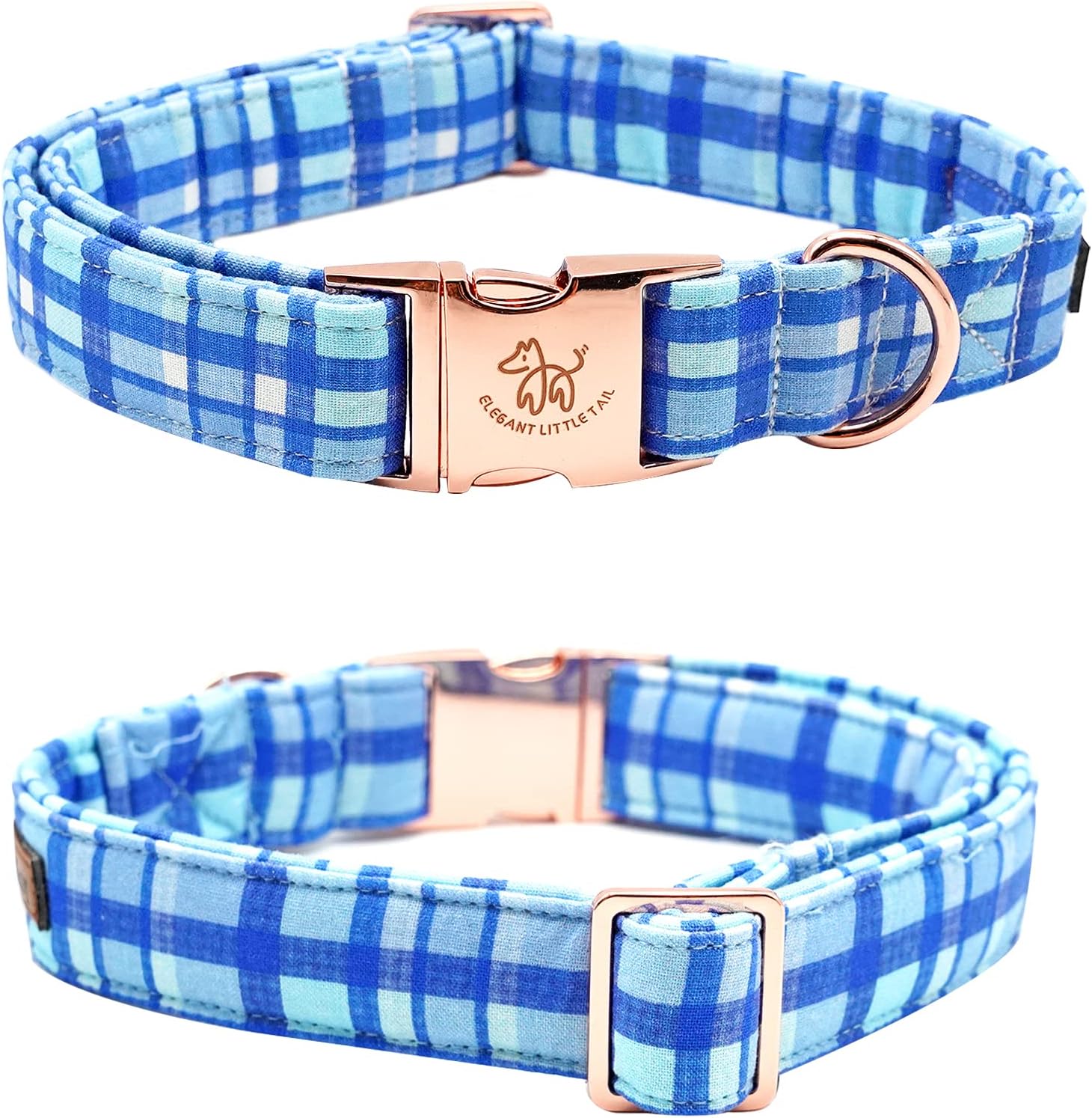Elegant little tail Dog Collar with Bow - Blue Plaid Boy Dog Collar Cute Bowtie Pet Collar Adjustable Dog Collar for Large Dog