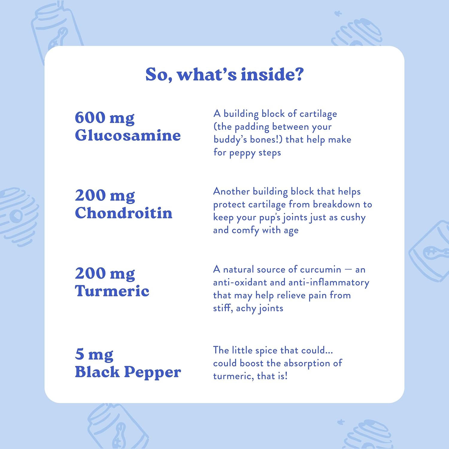 • Simple, Functional, Fun: With Glucosmine, MSM, and Chondrotin all packed into our trustworthy "B" shaped soft chews. Ohand they taste good, too!