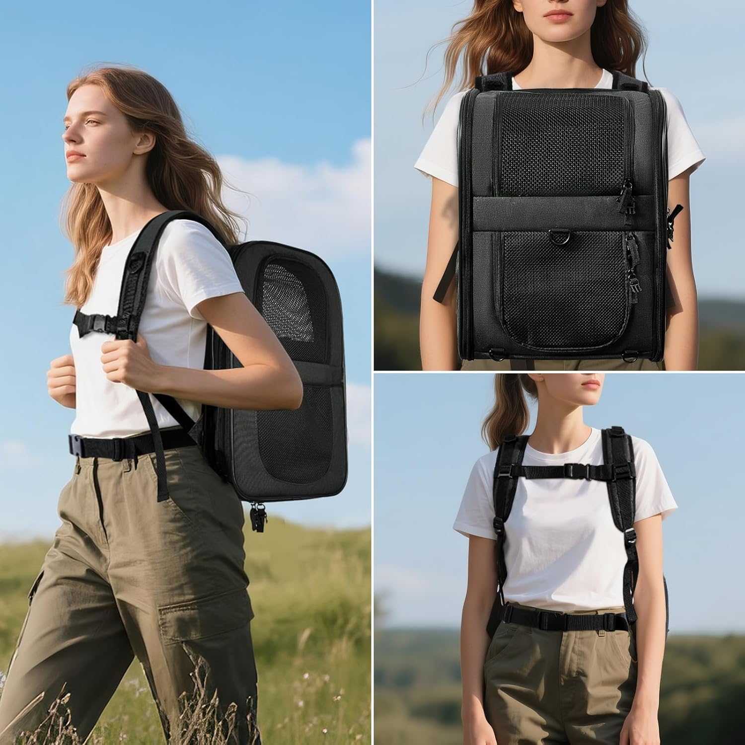 • ESCAPE PROOF- The last thing you want is an escaped pet running around the airplane cabin or outdoors. APOLLO WALKER pet backback carrier keeps your pet safe and secure while flying, walking, cycling, or hiking with claw-proof mesh and reinforced zippers. Carrier also has a leash tether to attach to your dog or cat’s collar if you decide to open the top window to let your pet stick their head out.