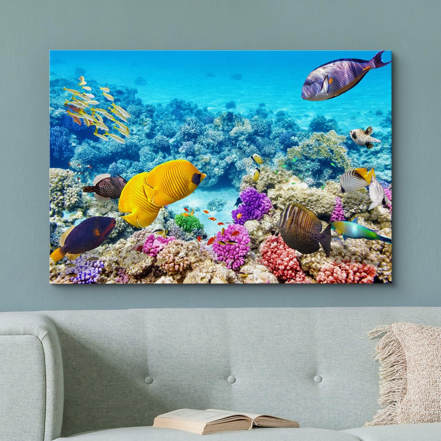 wall26 Canvas Print Wall Art Vibrant Teal Underwater Fish Coral Reef Nature Animals Photography Realism Rustic Scenic Landscape Wilderness Earth Colorful for Living Room, Bedroom, Office - 12"x18"