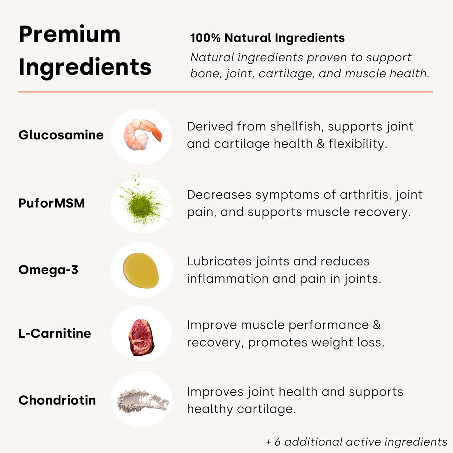 • Active Ingredients : Glucosamine, Chondroiting, Omega 3, MSM, L-Carnitine