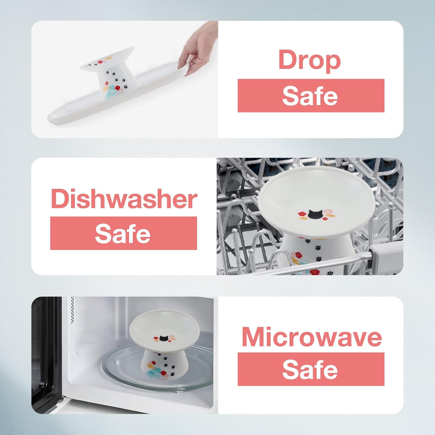 • Safe, Durable & Easy to Clean: Made from high-quality porcelain, free from lead and cadmium; meets strict US, EU, and Japanese safety standards; microwave and dishwasher-safe porcelain ceramic cat bowl.
