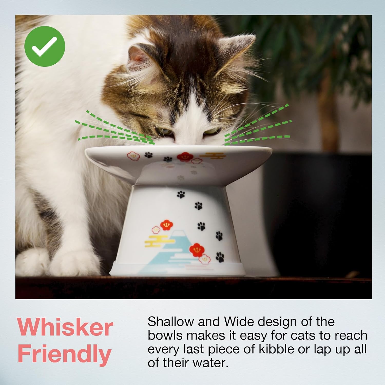 • Design & Comfort: This extra wide elevated cat food bowl (fuji limited edition) helps reduce whisker fatigue and strain on your cat’s neck; ideal for flat-faced breeds and messy eaters, serving as whisker fatigue cat bowl which keeps food centered.