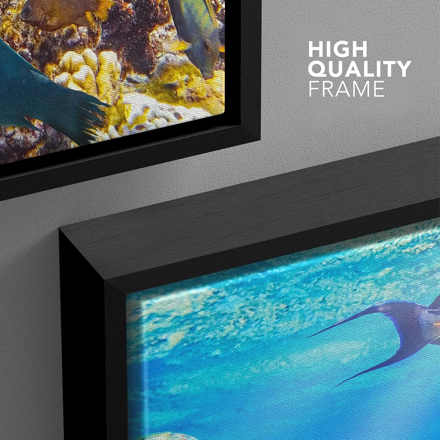 wall26 Framed Canvas Print Wall Art Sunlight Ocean Sea Coral Reef Anemone Fish Nature Animals Realism Rustic Scenic Landscape Wilderness Earth for Living Room, Bedroom, Office - 24"x36" Black