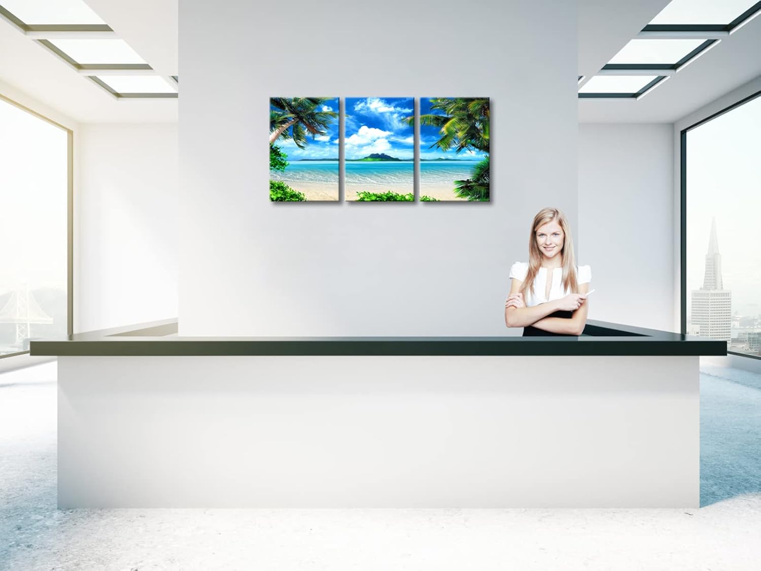 • 3 panels stretched canvas art printing for home decorations wall decor. Each panel has a black hook already mounted on the wooden bar for easy hanging out of box.