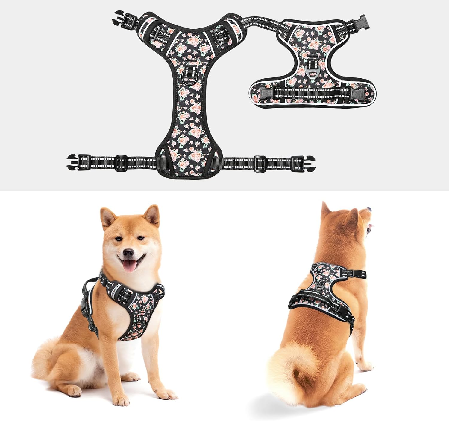 • 【4 WAYS ADJUSTABLE STRAPS】The fit of this pet harness can be completely customized for your pet using the slide adjusters at the chest and neck.You can use its 2 neck straps and 2 chest straps to create a Perfect Fit for your dog with some room of growth. No worries about slipping out or choking.