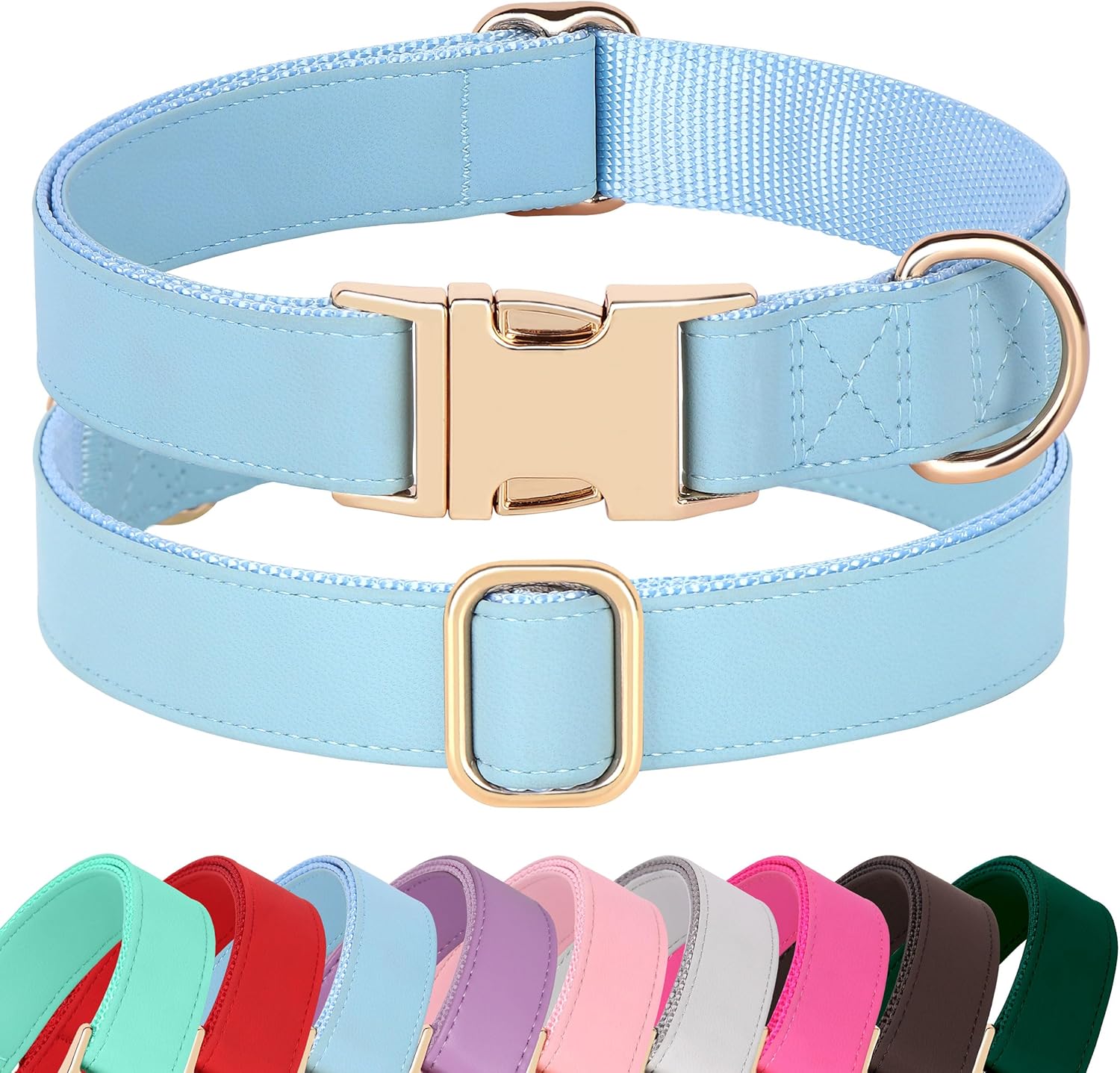 PET ARTIST Soft PU Leather Dog Collar for Small Dogs, Bright & Classic Nylon Padded Durable Dog Collar Leather with Quick Release Metal Buckle Adjustable for Male Dogs, Neck Fit 9-14"
