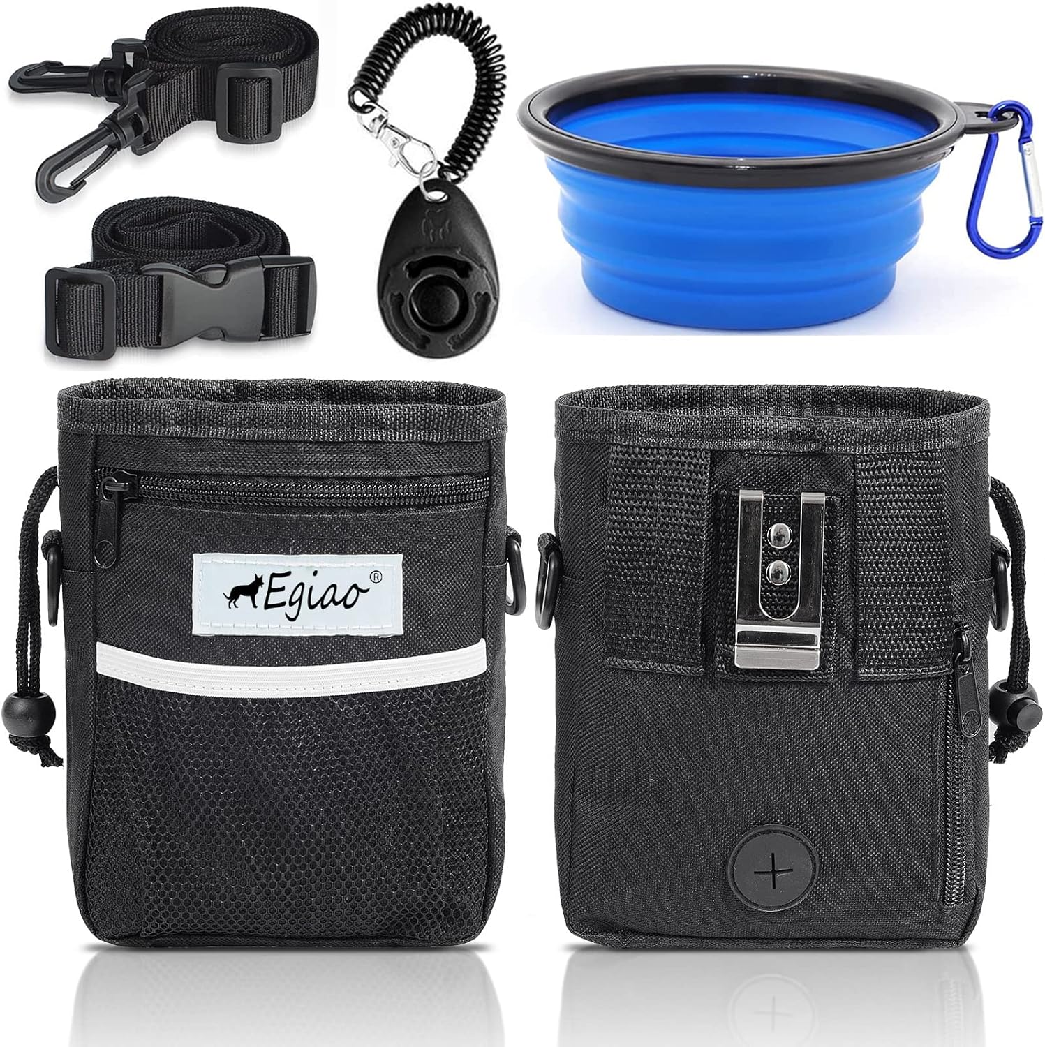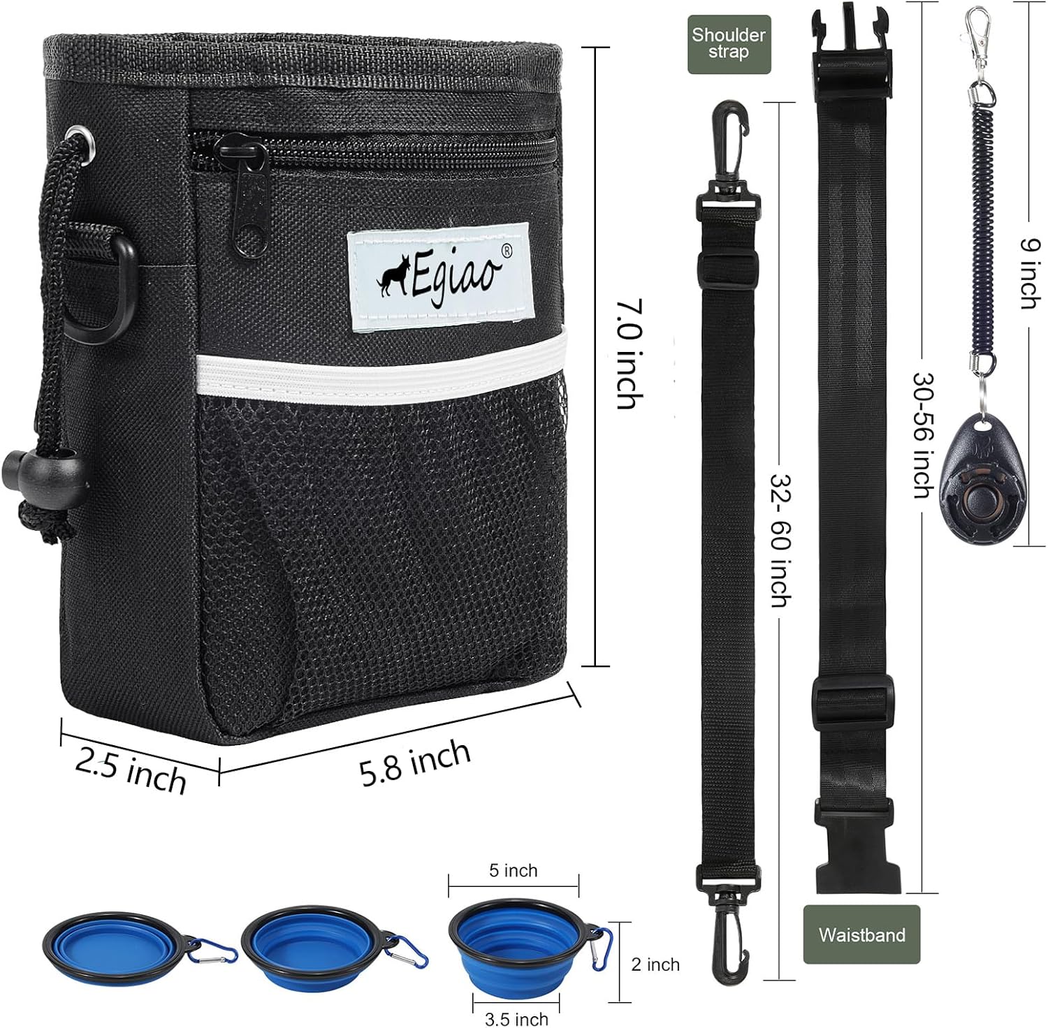 • 🐾5PCS Dog Training Kit: Includes a multifunctional dog training pouch, a collapsible dog bowl, a training clicker, a waist strap, a shoulder strap