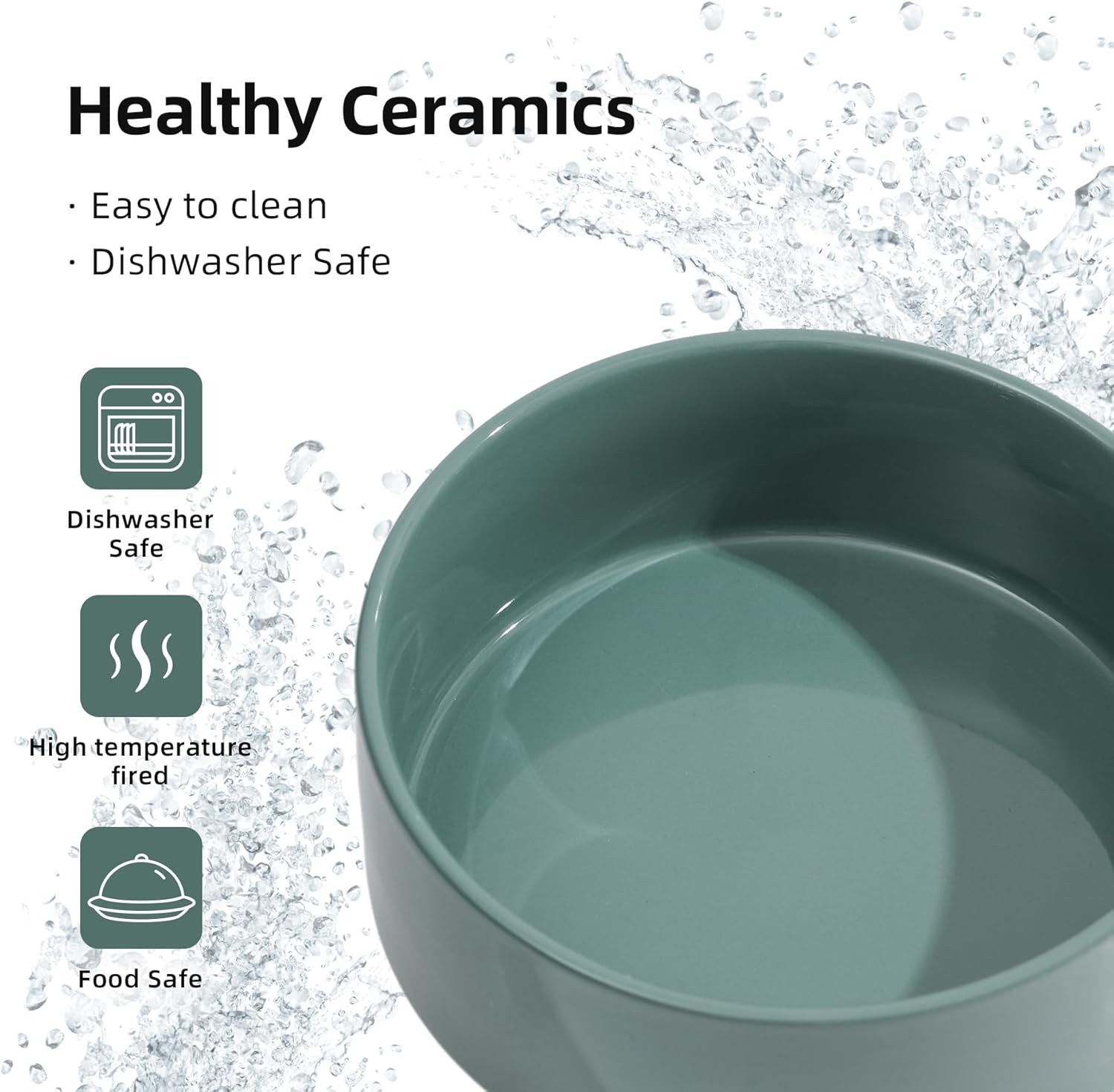 Ceramic Elevated Dog Bowls, Food and Water Bowls for Dogs, Puppy, Raised Dog Dish, Pet Feeder(6inch, 2 x Dark Green + Stand)