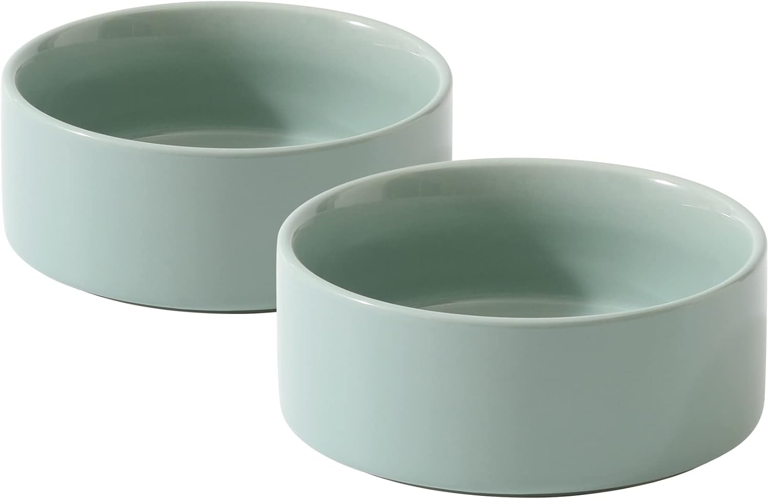 Ceramic Set of 2 Cat Bowls, Food and Water Bowls for Cats, Kitty, 2pcs Cat Dishes, Pet Feeder(5.1inch, 2 x Light Green Bowls)