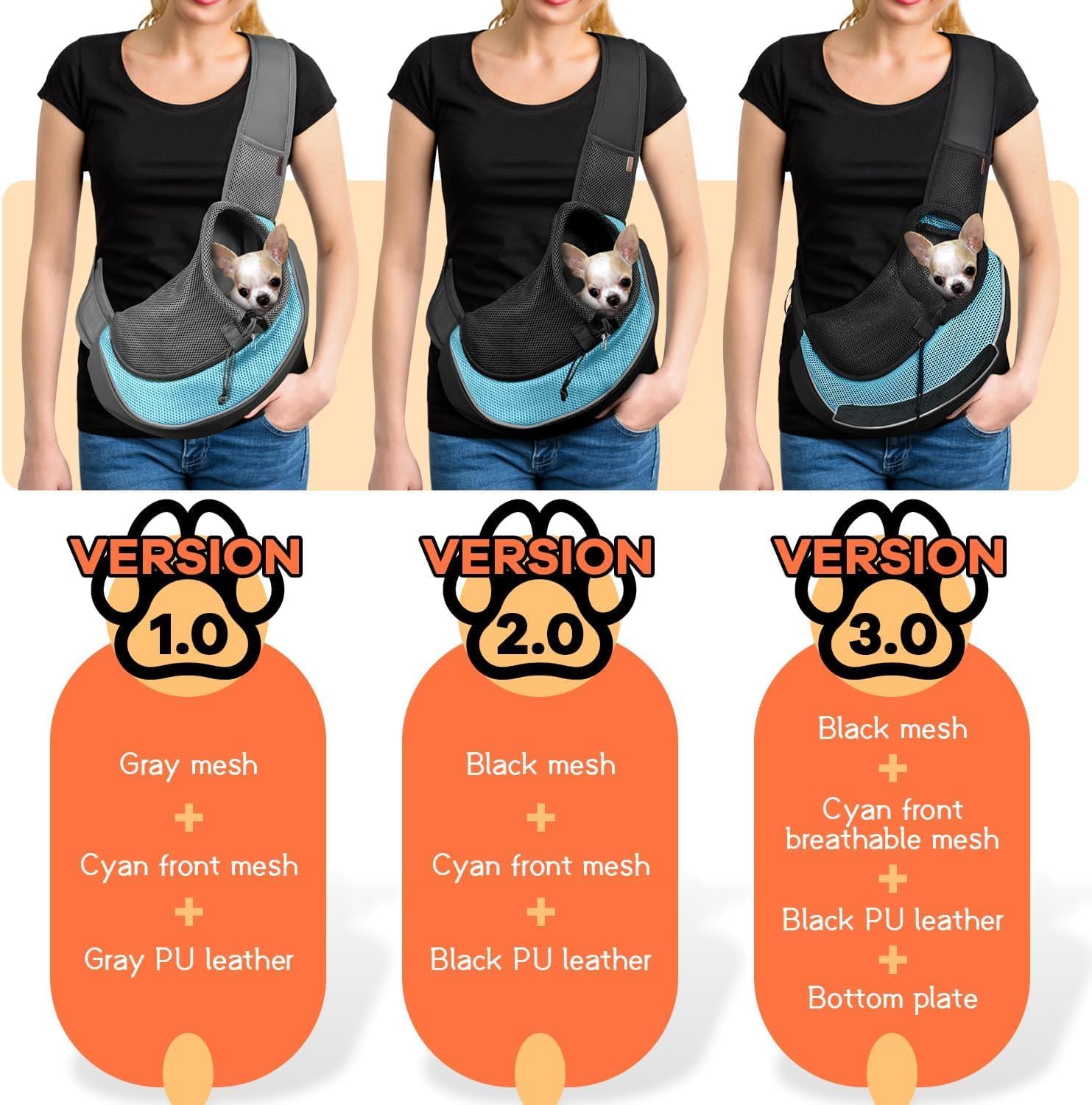 YUDODO Pet Sling Carrier for Small Dogs & Cats – Hands-Free Puppy Carrier with Safety Hook, Large Zipper Pocket, Soft Breathable Mesh, Adjustable Strap & Reflective Strip (Cyan 3.0 M)