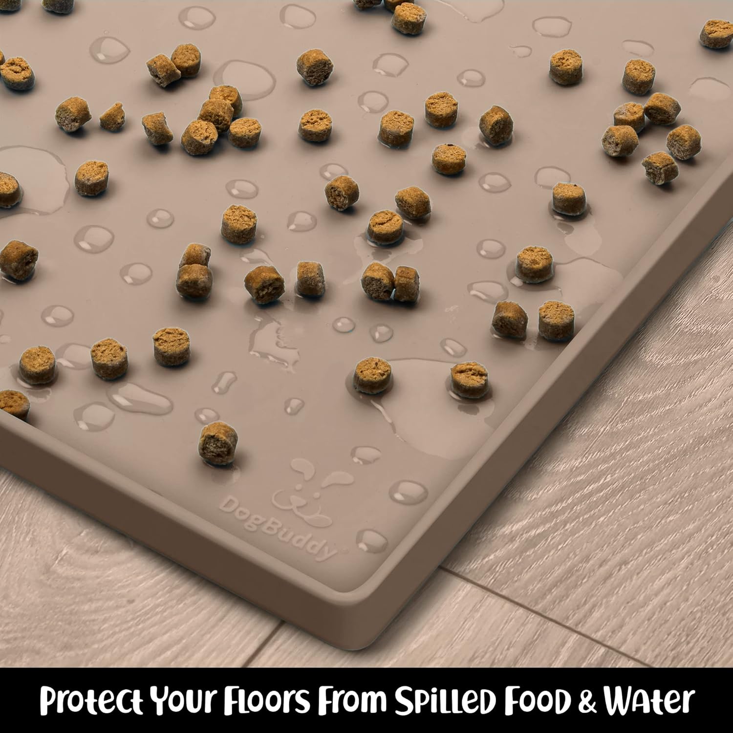 DogBuddy Dog Food Mat – Waterproof Dog Bowl Mat for Food and Water, Silicone Pet Feeding Mats for Floors, Non-Slip Placemat with High Edges for Dogs Bowls, Puppy Essentials (M: 21” x 14”, Taupe)