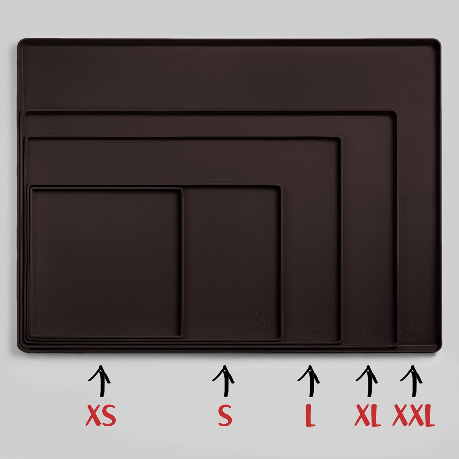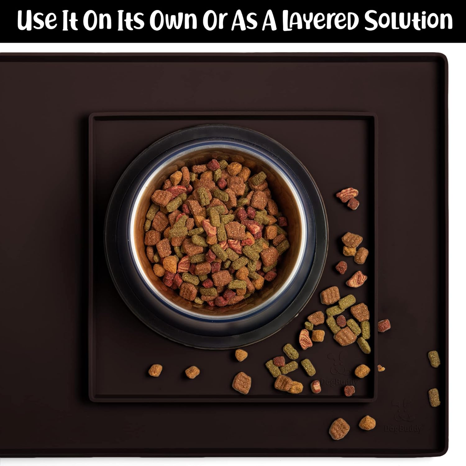 DogBuddy Dog Food Mat – Waterproof Dog Bowl Mat for Food and Water, Silicone Pet Feeding Mats for Floors, Non-Slip Placemat with High Edges for Dogs Bowls, Puppy Essentials (XS: 11" x 11", Coffee)