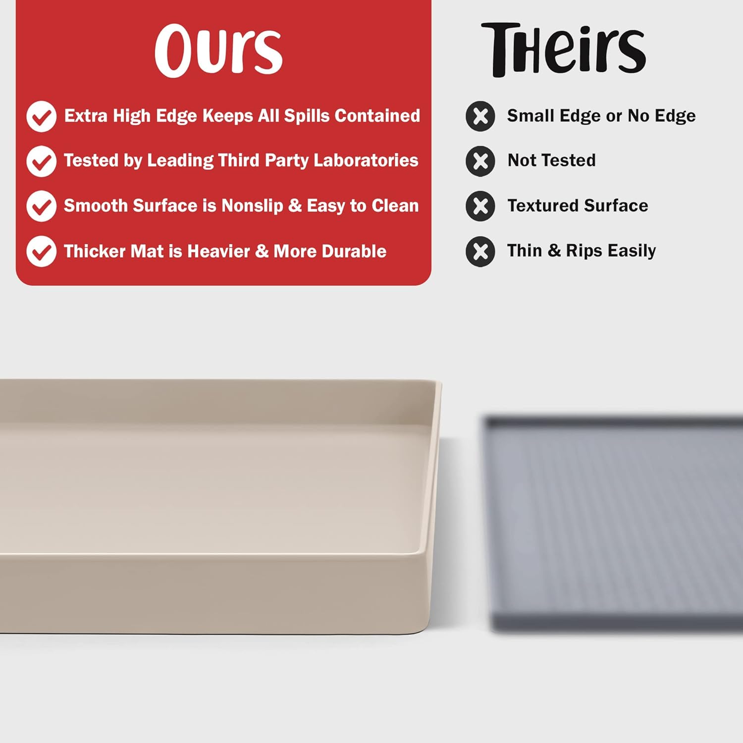 DogBuddy Dog Food Mat – Waterproof Dog Bowl Mat for Food and Water, Silicone Pet Feeding Mats for Floors, Non-Slip Placemat with High Edges for Dogs Bowls, Puppy Essentials (XL: 28" x 18", Vanilla)