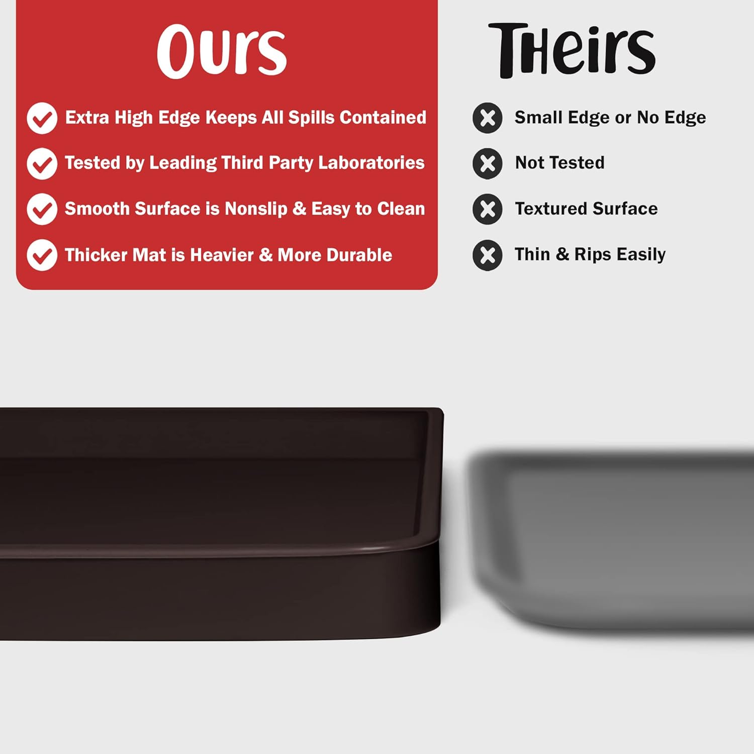 • Less Mess & Less Stress: Super high edge (0.6”) of DogBuddy Dog Food Mat keeps the spilled food and water on the mat and away from your beautiful floor. Silicone is naturally 100% waterproof, so what happens on the mat stays on the mat.