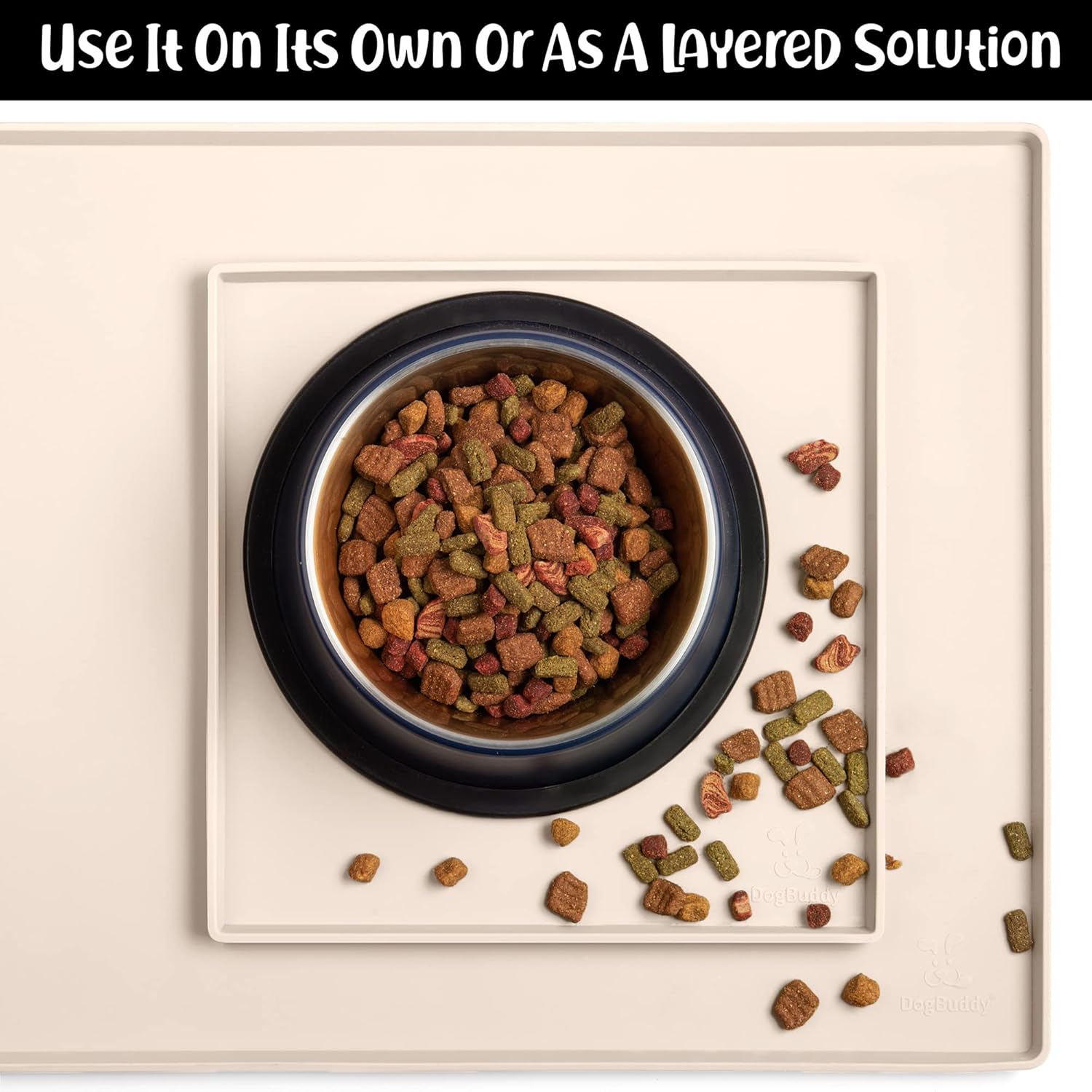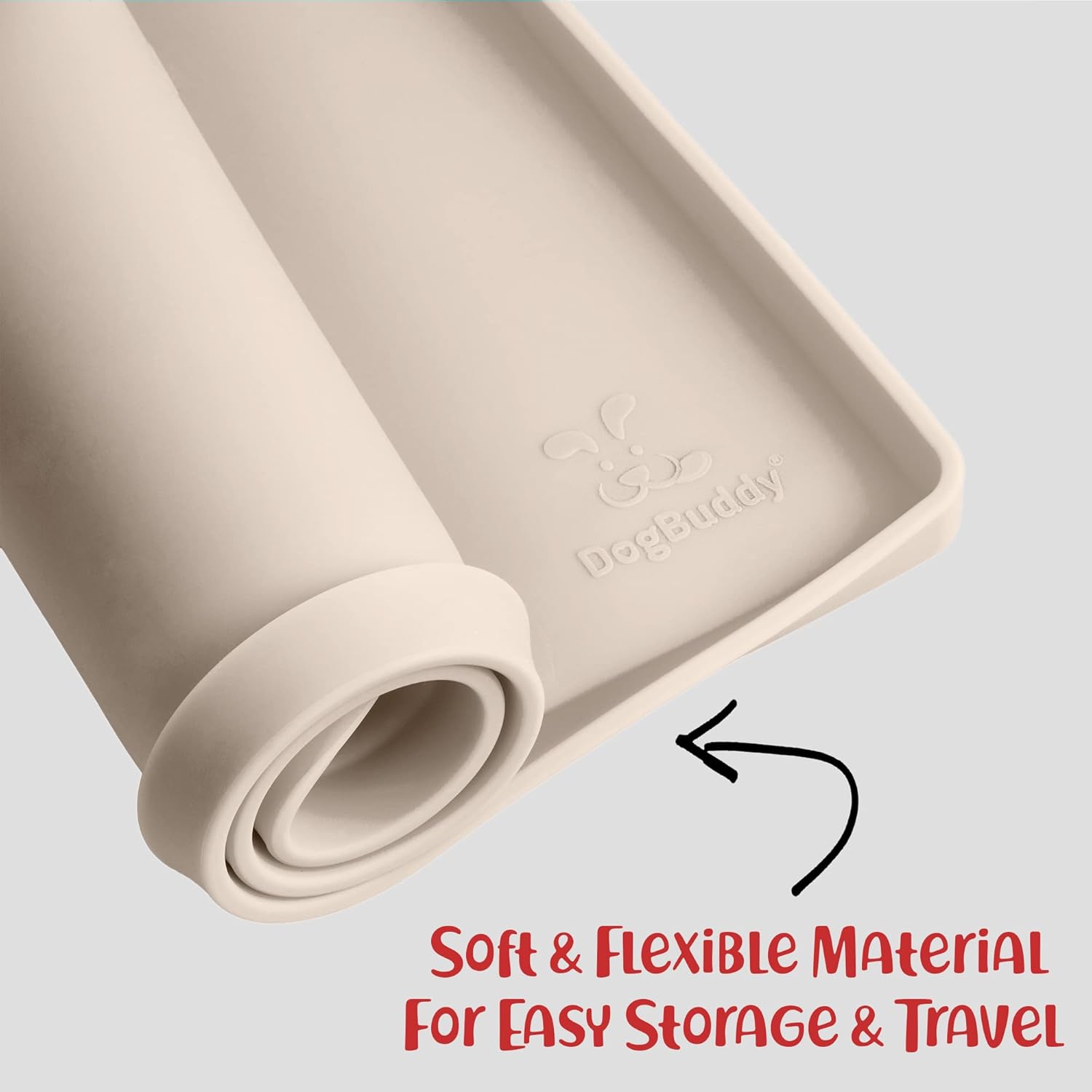 DogBuddy Dog Food Mat – Waterproof Dog Bowl Mat for Food and Water, Silicone Pet Feeding Mats for Floors, Non-Slip Placemat with High Edges for Dogs Bowls, Puppy Essentials (XS: 11" x 11", Vanilla)