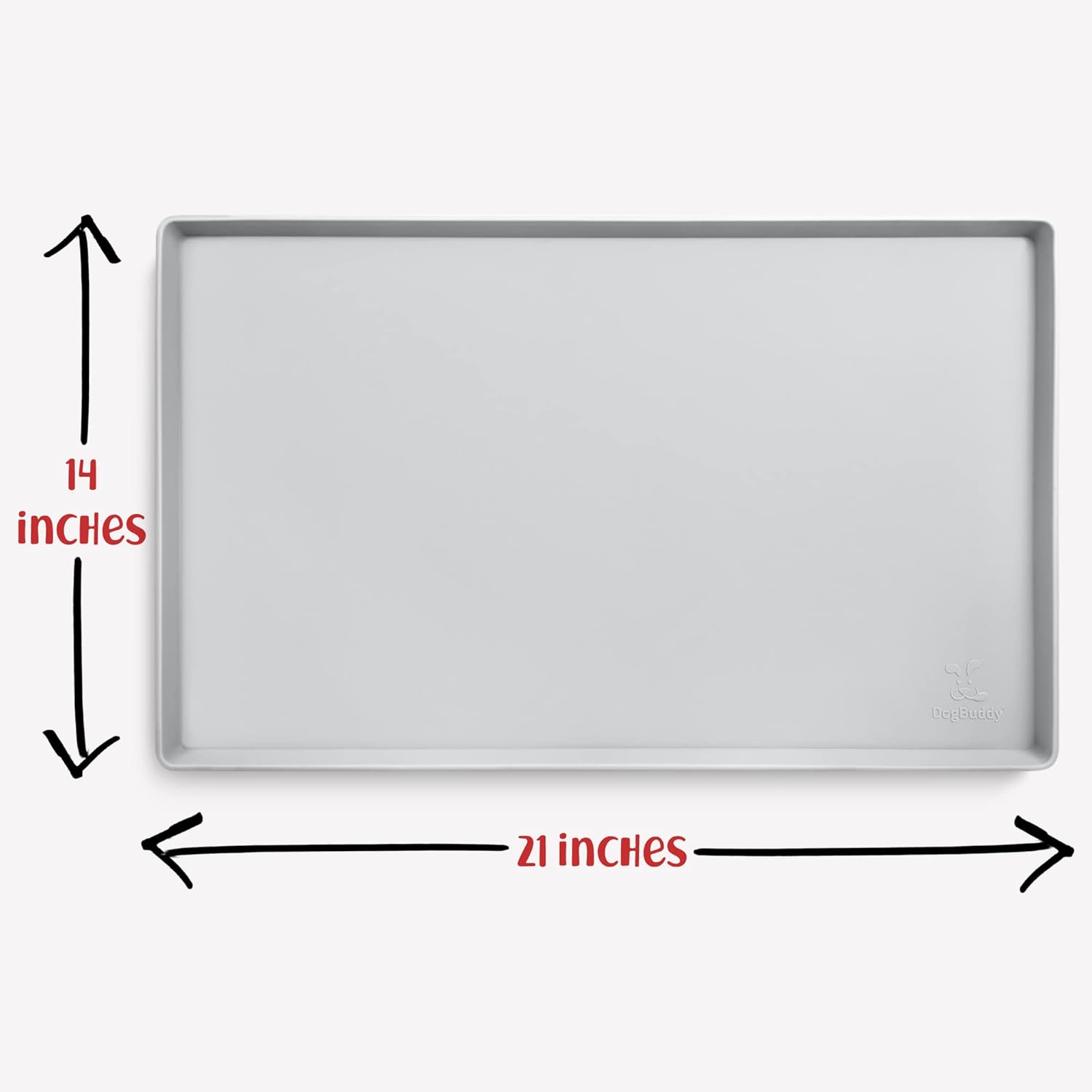 DogBuddy Dog Food Mat – Waterproof Dog Bowl Mat for Food and Water, Silicone Pet Feeding Mats for Floors, Non-Slip Placemat with High Edges for Dogs Bowls, Puppy Essentials (M: 21” x 14”, Mist)