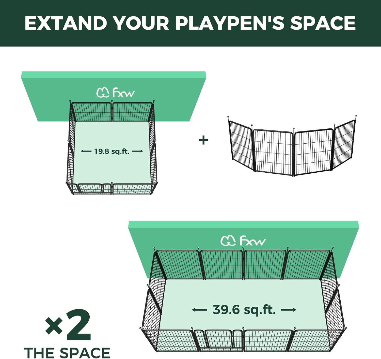 • Multi-scenario use: The FXW dog playpen features a powder coating that will help protect against rust and extend its life, which makes it ideal for RV camping, traveling, or for use in the yard. When used indoors, we recommend placing it on a dog pad or carpet to prevent the rods from scratching the floor, or please try our new floor protectors or dog pee pad for the same purpose.