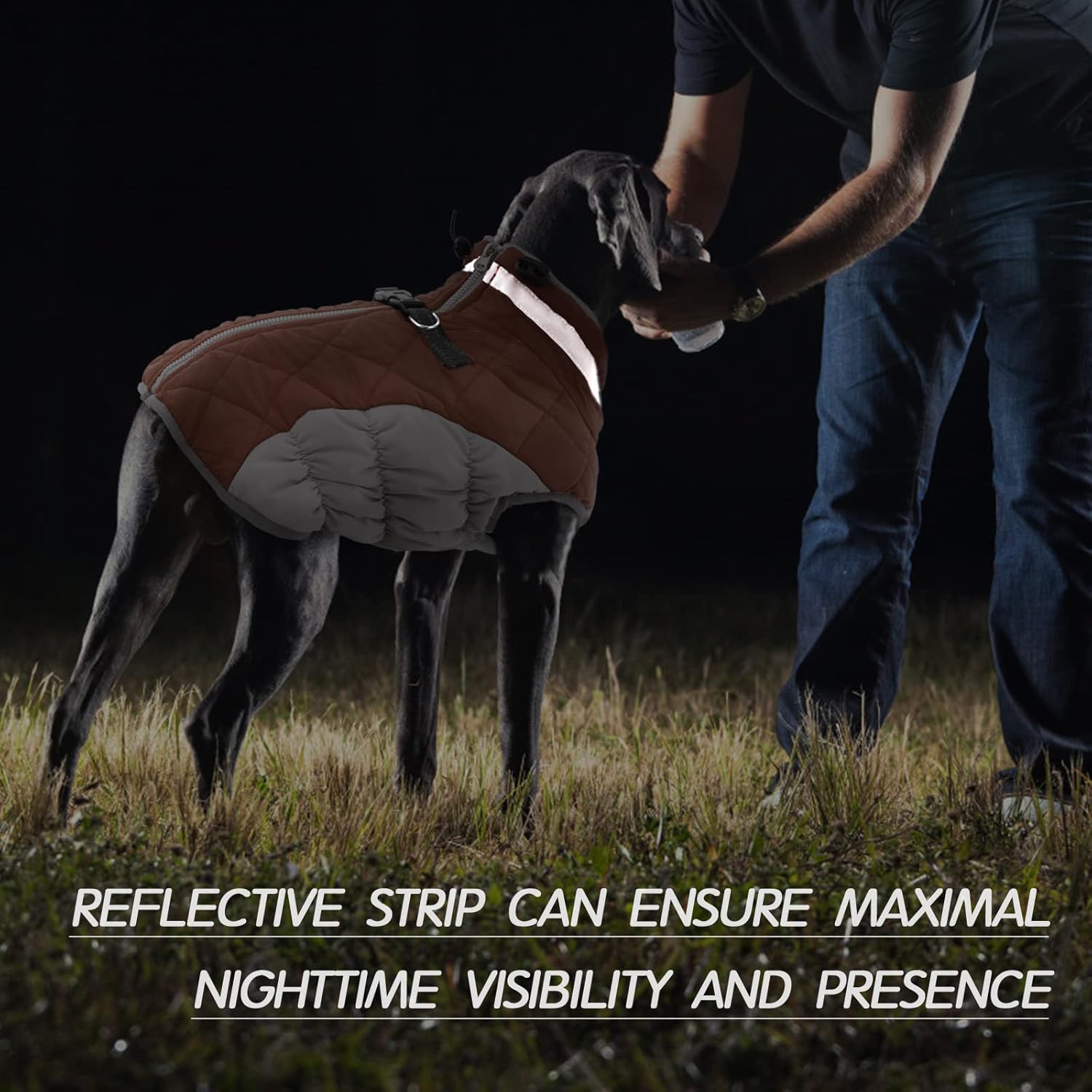 FUAMEY Dog Coat for Large Dogs,Waterproof Dog Winter Jacket with Harness Built in Puppy Cold Weather Coats Reflective Pet Vest with Zipper Warm Fleece Dogs Snowsuit Windproof Brown XXL