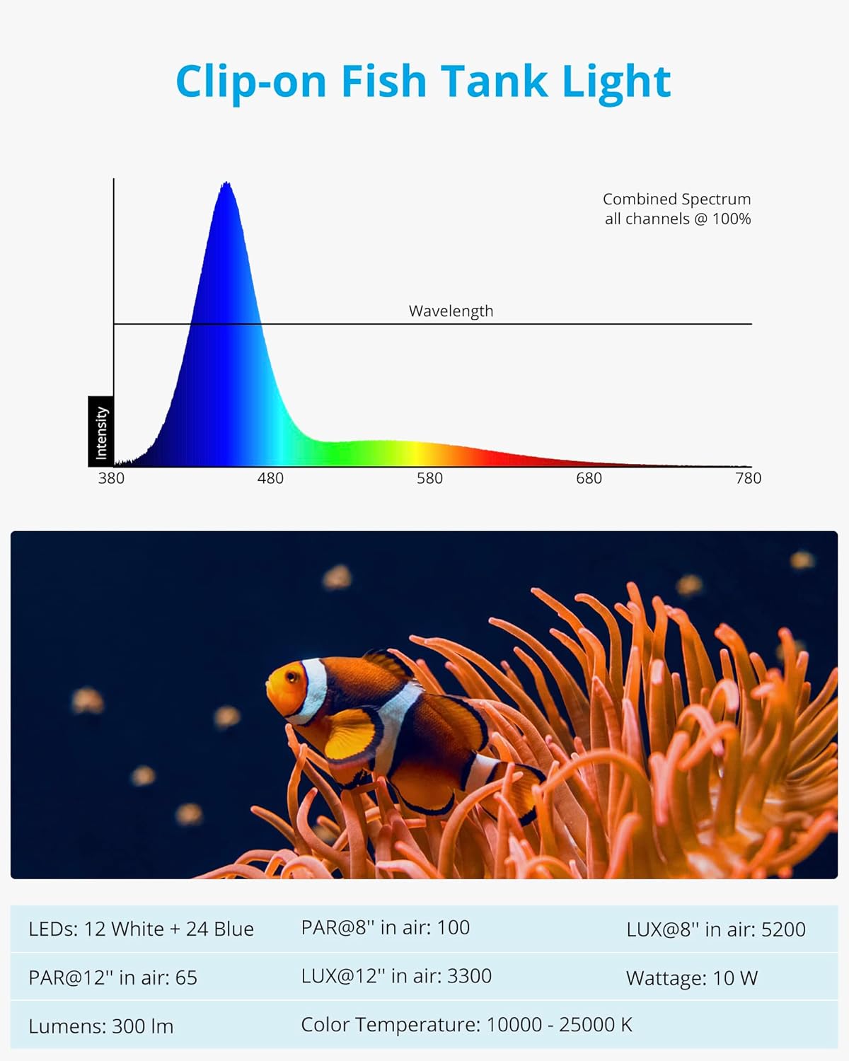 • Ideal balance of blue and white LEDs brings out optimal colors for your fish and produces amazing shimmers for your aquarium