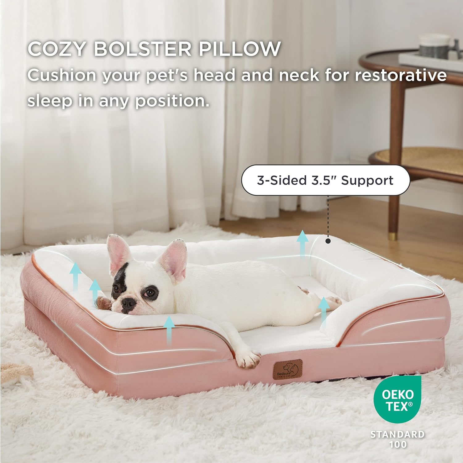 Bedsure Orthopedic Dog Bed Medium Size Dogs - Washable Medium Dog Cat Bed Waterproof, Comfort Pet Couch Sofa with Washable Removable Cover, Pets Bed with Nonskid Bottom, Pink, 28"