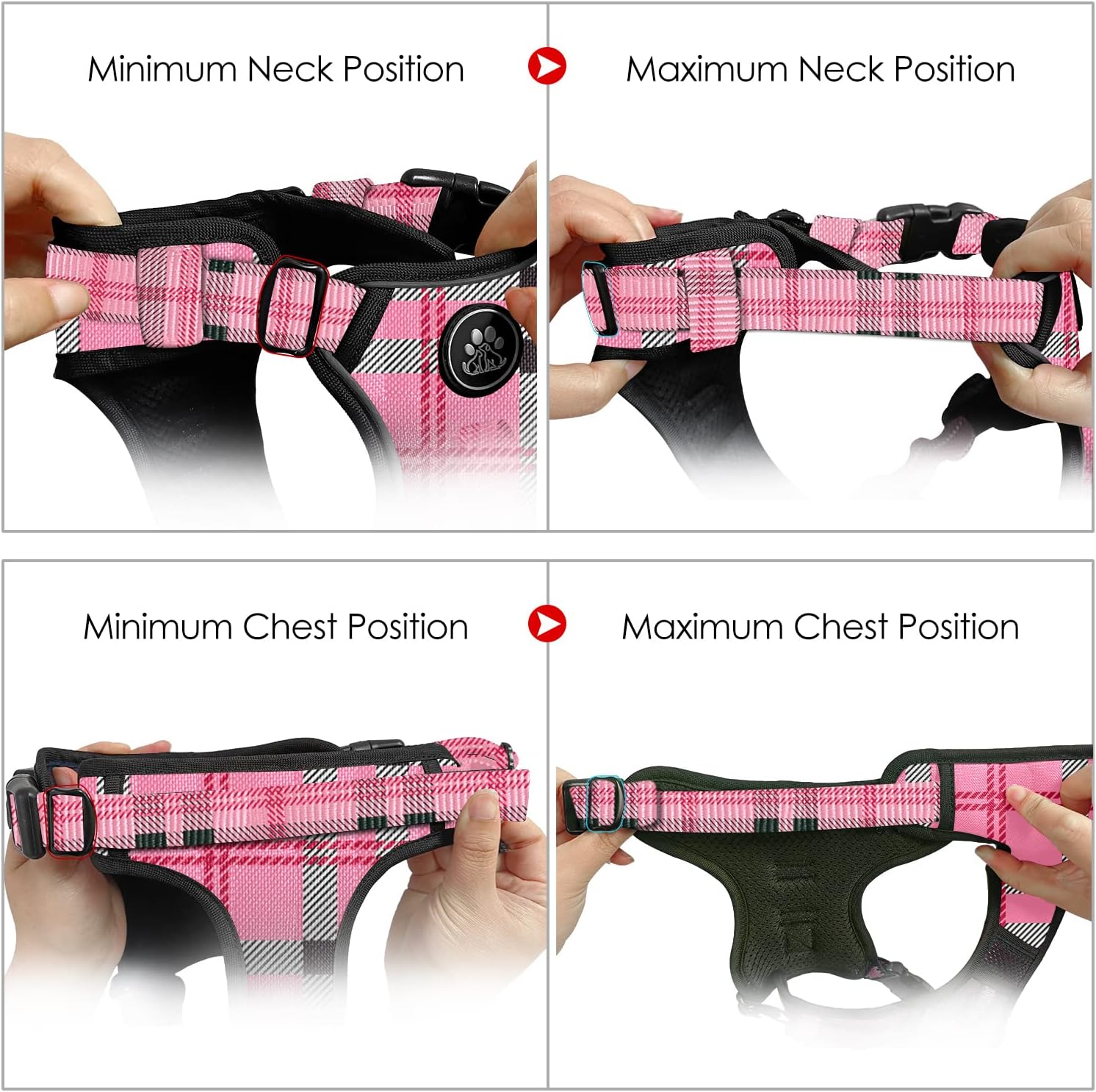 NESTROAD No Pull Dog Harness with Leash, Reflective No Choke Pet Vest Harness,Adjustable Soft Padded Dog Harness with Easy Control Handle for Large Dogs(Checkered Pink,X-Large)