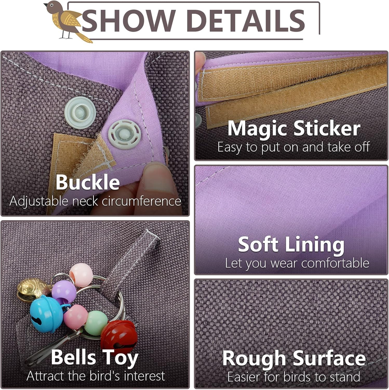 • Two Belts Design: Parrots diaper shawl are two loops on the shoulder top, you can hang a anklet for fixing pet birds, or some toys and treats for them playing on your shoulder