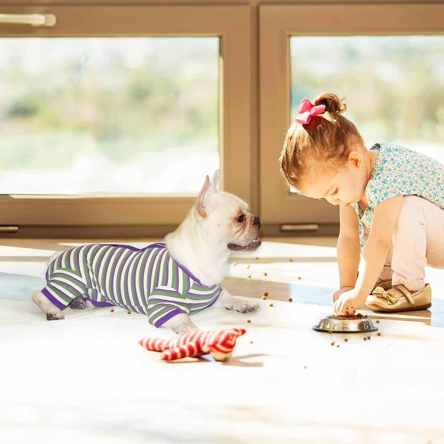 TONY HOBY Dog Pajamas, Knitted Dog Jumpsuit Shirt in Cold Weather, Dogs Surgical Recovery Suit for Small Medium Dogs (Purple&Green, Boy, S)