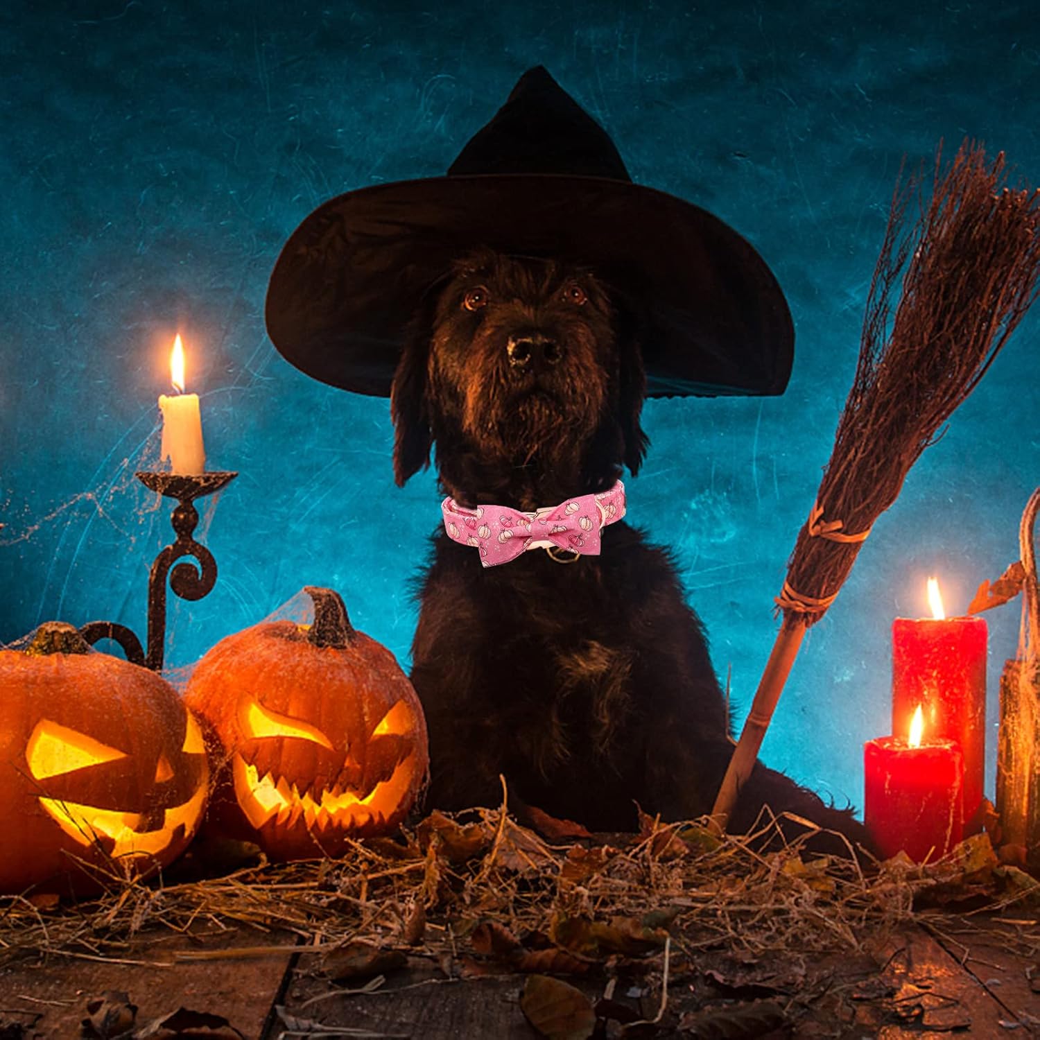 Elegant Little Tail Dog Collar with Bow, Adjustable Halloween Pumpkin Bowtie Pet Gift Collar for Small to Large Dogs