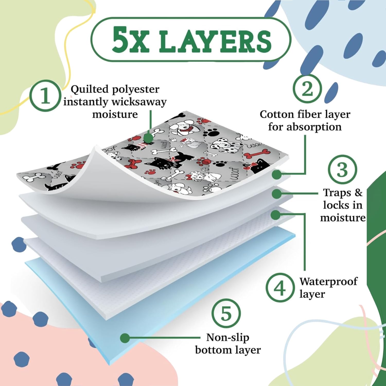 • Superior protection: Our dog washable pee pads feature a waterproof layer that prevents leaks, ensuring your floors stay dry and protected from accidents, making them perfect for training or everyday use.