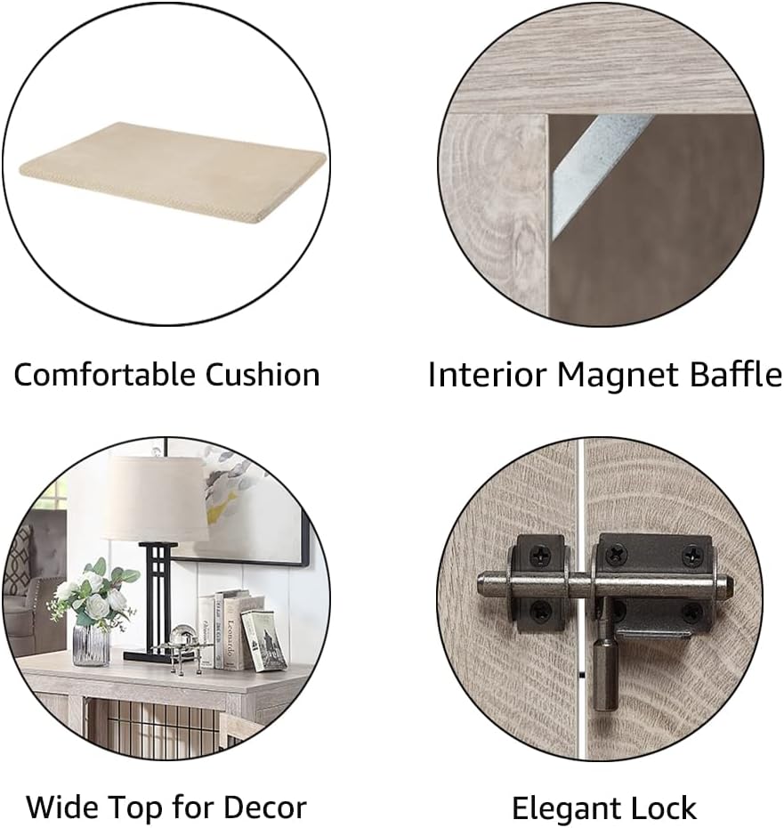 • ELEGANT & DUAL-PURPOSE: This is a nice piece of furniture that also serves as a dog crate. Appear as an elegant side table, end table, and nightstand. A great way to multi-use and show your decorative side to make your home stand out! Your choice of home creativity! The maximum support weight of the top is 200 lbs.