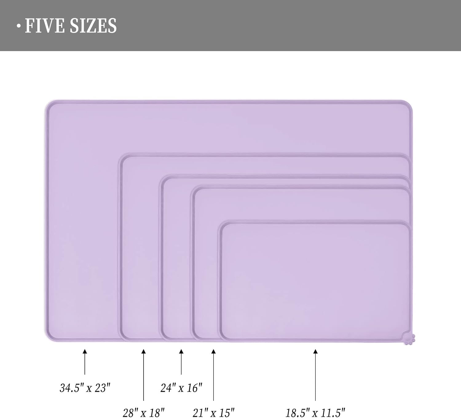 • Various sizes available: our pet mats come in 5 different sizes - 18.5" x 11.5", 22" x 14", 24" x 16", 28" x 18", and 32" x 24". Suitable for all kinds of pets, from puppies to large pets, choose the perfect size for your furry friends and avoid messy spills at mealtime