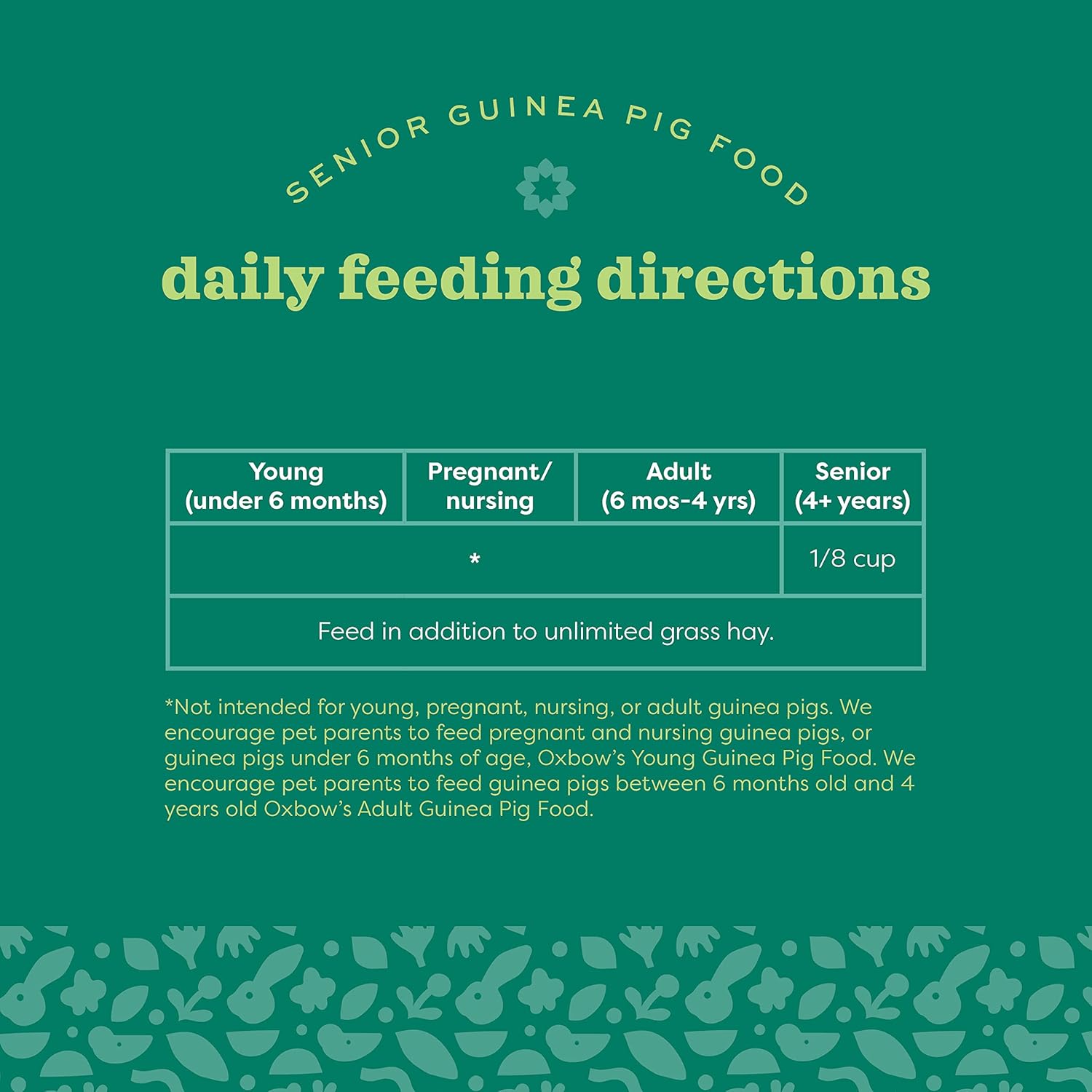• SENIOR GUINEA PIG FOOD: Designed for senior guinea pigs aged 4+ years, our guinea pig food marries nutrition and taste perfectly; Artfully crafted with timothy, orchard, and oat hay, ensuring a high-fiber diet for your cherished pet's healthy life