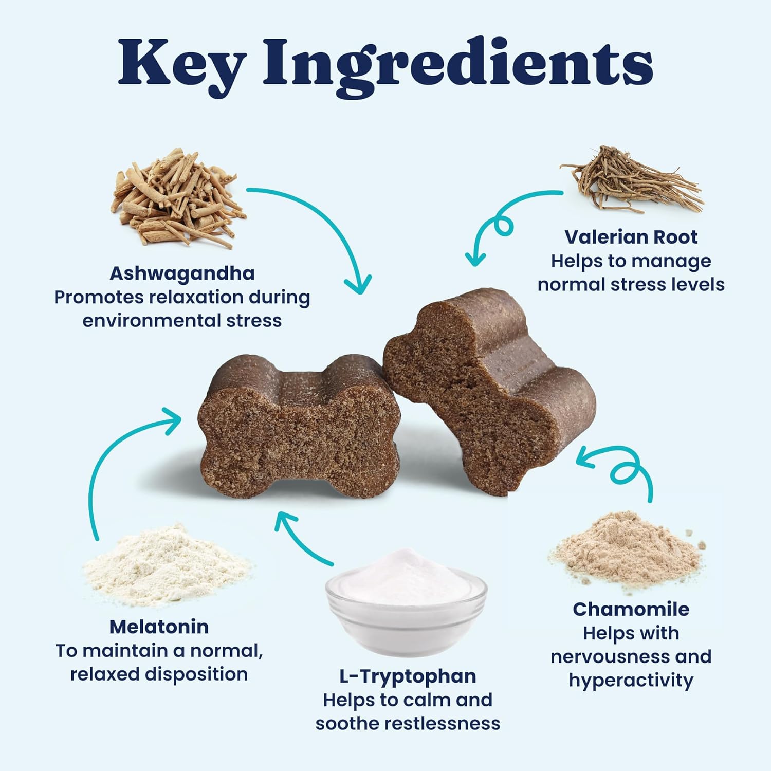 • Herbal Calming for Dogs – Made with melatonin, Chamomile & Valerian Root, these calming dog chews promote tranquil behavior & composure. Trusted calming chews for puppies, calming chews for small dogs, medium dogs, & calming chews for large dogs
