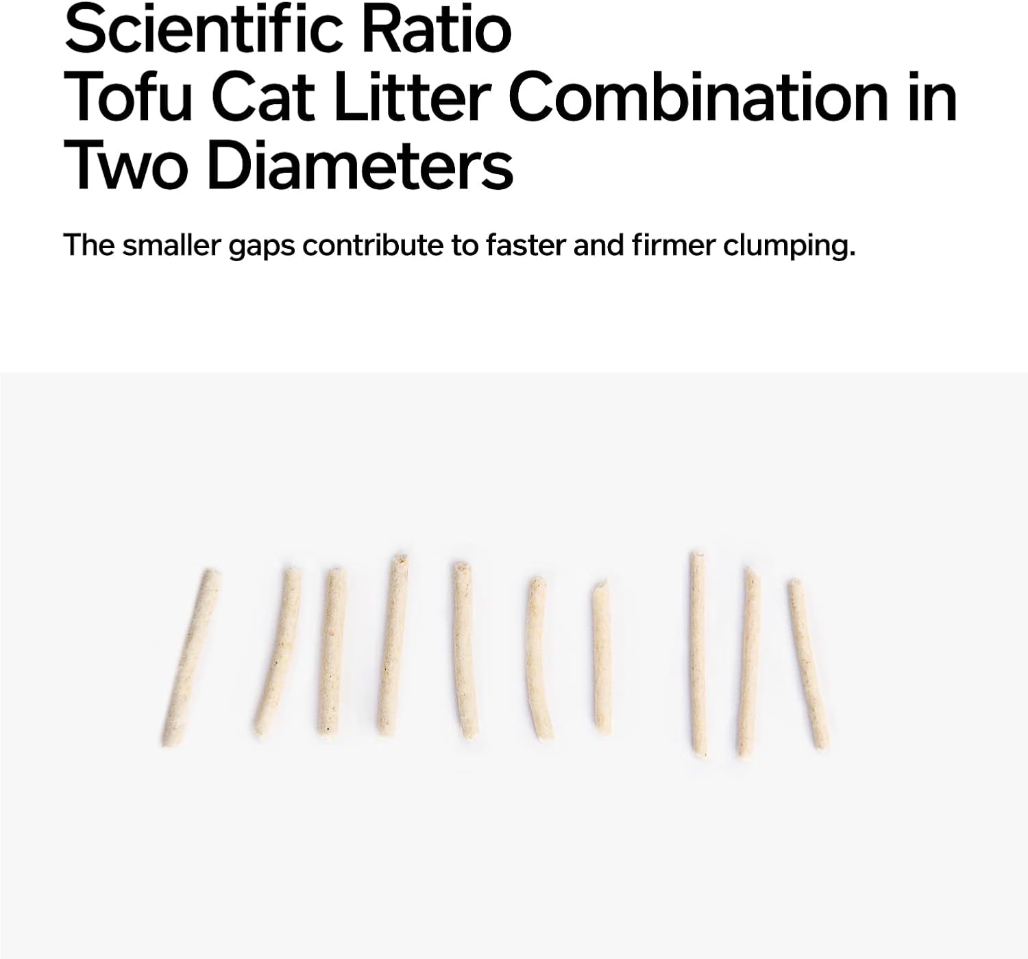 • 【Less Scattering, Improved Wrapping】70% 2 mm (Diameter) Tofu Cat Litter+30% 1.5 mm (Diameter) Tofu Cat Litter。Perfect Combination, Less Scattering, Improved Wrapping.