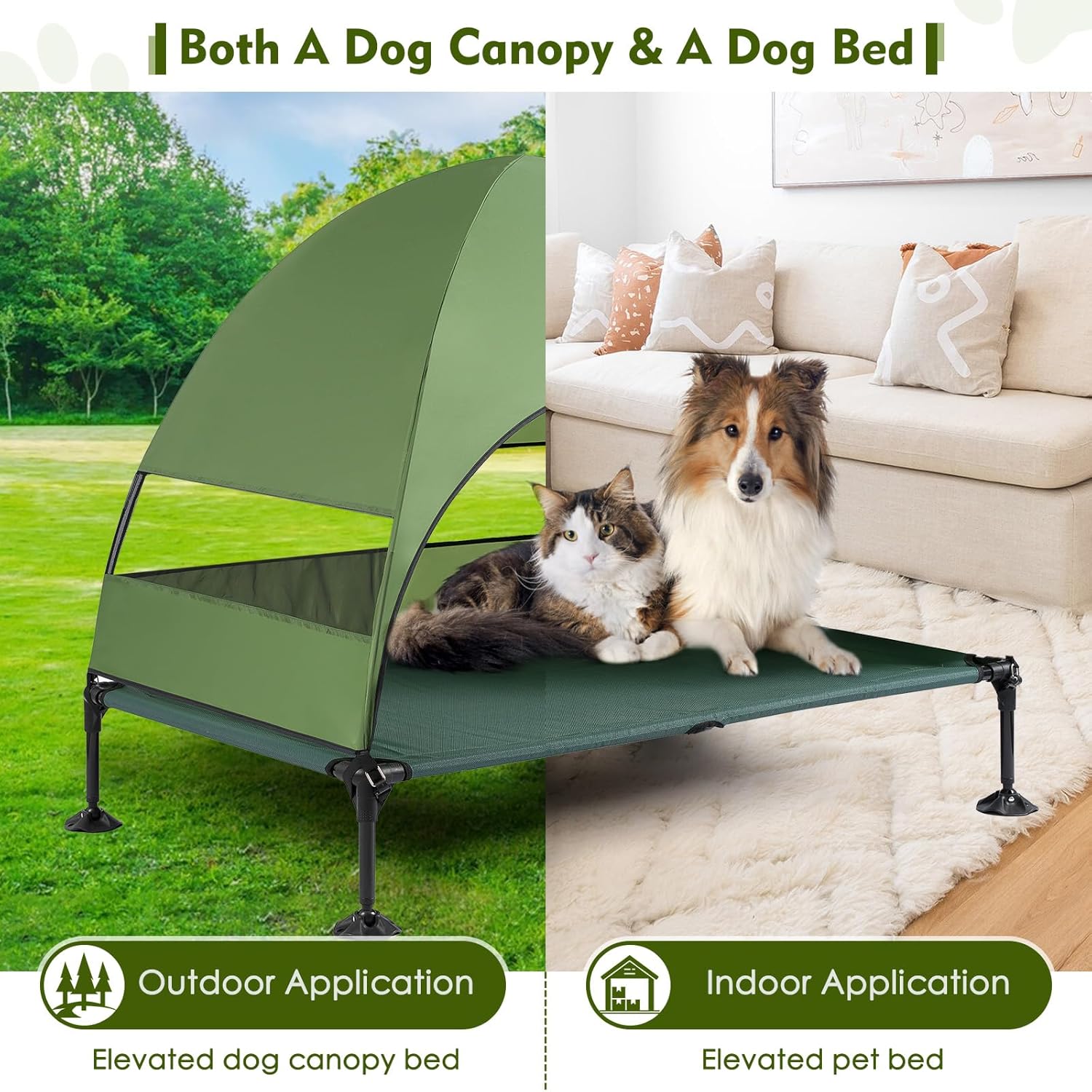 - Wide Application: with the unique adjustable feet, this bed is great for outdoor use beach, picnic, camping, yard, patio, it keeps pets cool, dry and off bugs for a great outdoor time. We can also remove the canopy to provide dogs a comfortable place to spend their indoor time. This dog cot bed is under Furggis 100% satisfactory . If you have any questions with it, please tell us, we will get back to you within 24 hours and work it out for you as soon as possible.