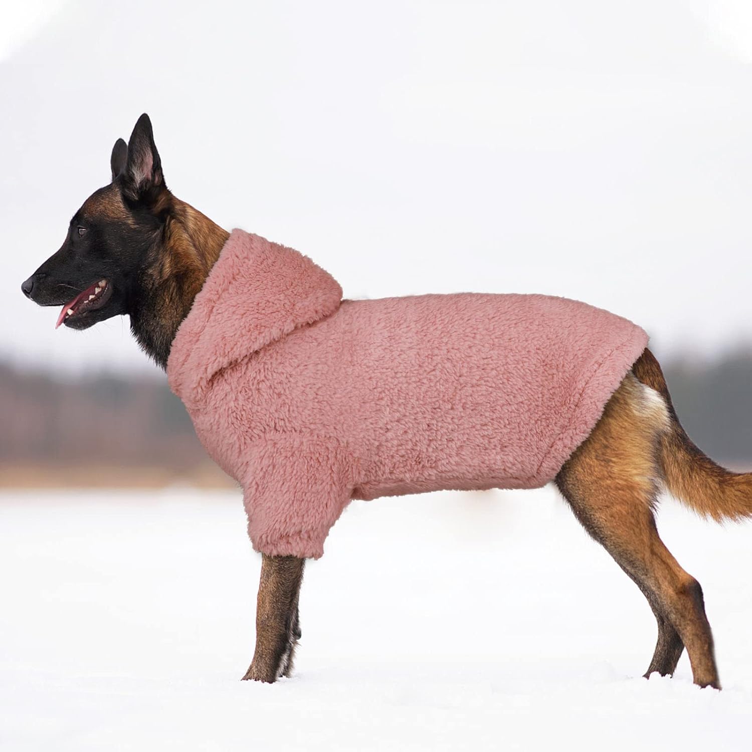 Fuzzy Dog Sweaters for Large Dogs Pet Hoodie Clothes Warm Soft Pet Coats Hooded Sweatshirt Dog Sweaters for Extra Large Dogs(Pink-XXL)