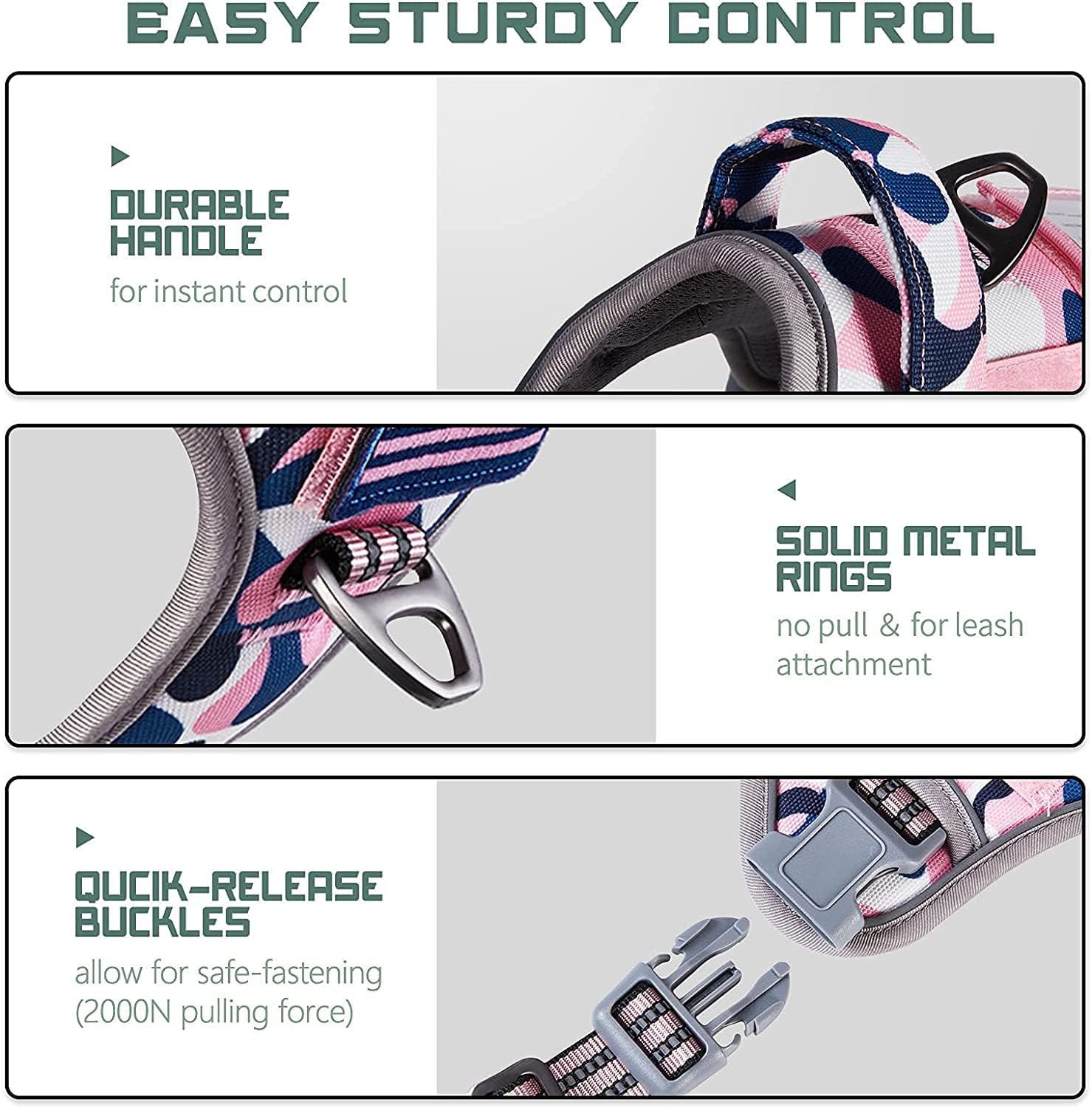BUMBIN Tactical Dog Harness for Small Dogs, No Pull, Pink Camo XS