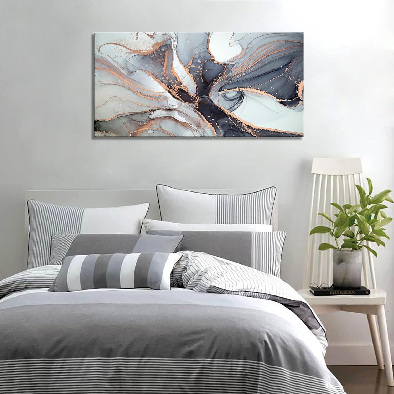 XXMWallArt FC3475 Framed Wall Art Gray and Gold Abstract Painting Background Abstract Canvas Wall Art Print Painting for Bedroom Living Room Office Wall Decor Home Decor