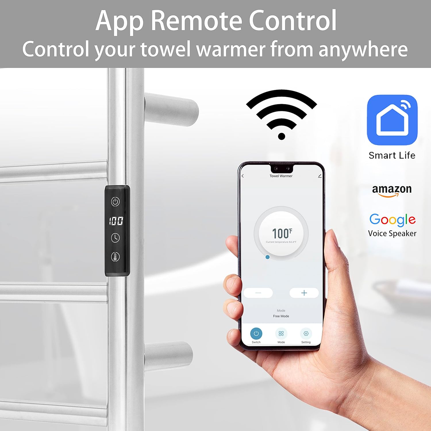• [VOICE CONTROL]: Simply voice command to control our smart towel warmer via Alexa or Google Home. Enjoy the hands-free convenience of controlling the home electronic appliances. No Hub Required, works with 2.4GHz network