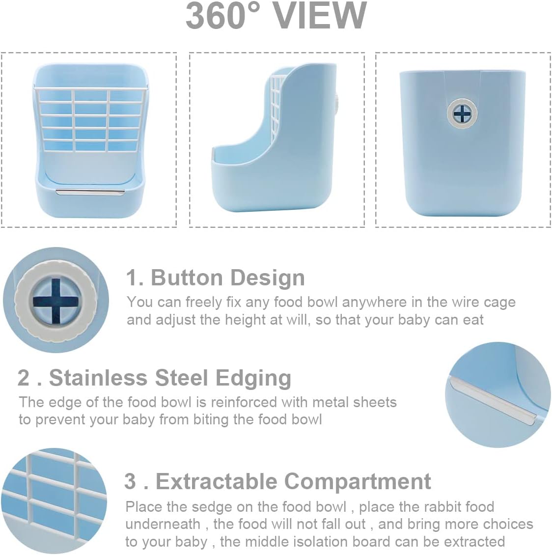 • 🐹【Small animal automatic feeder】The design of food bowl + grass rack, provides more choices for pets, and the rack is easy to disassemble, which can provide more space for placing food.