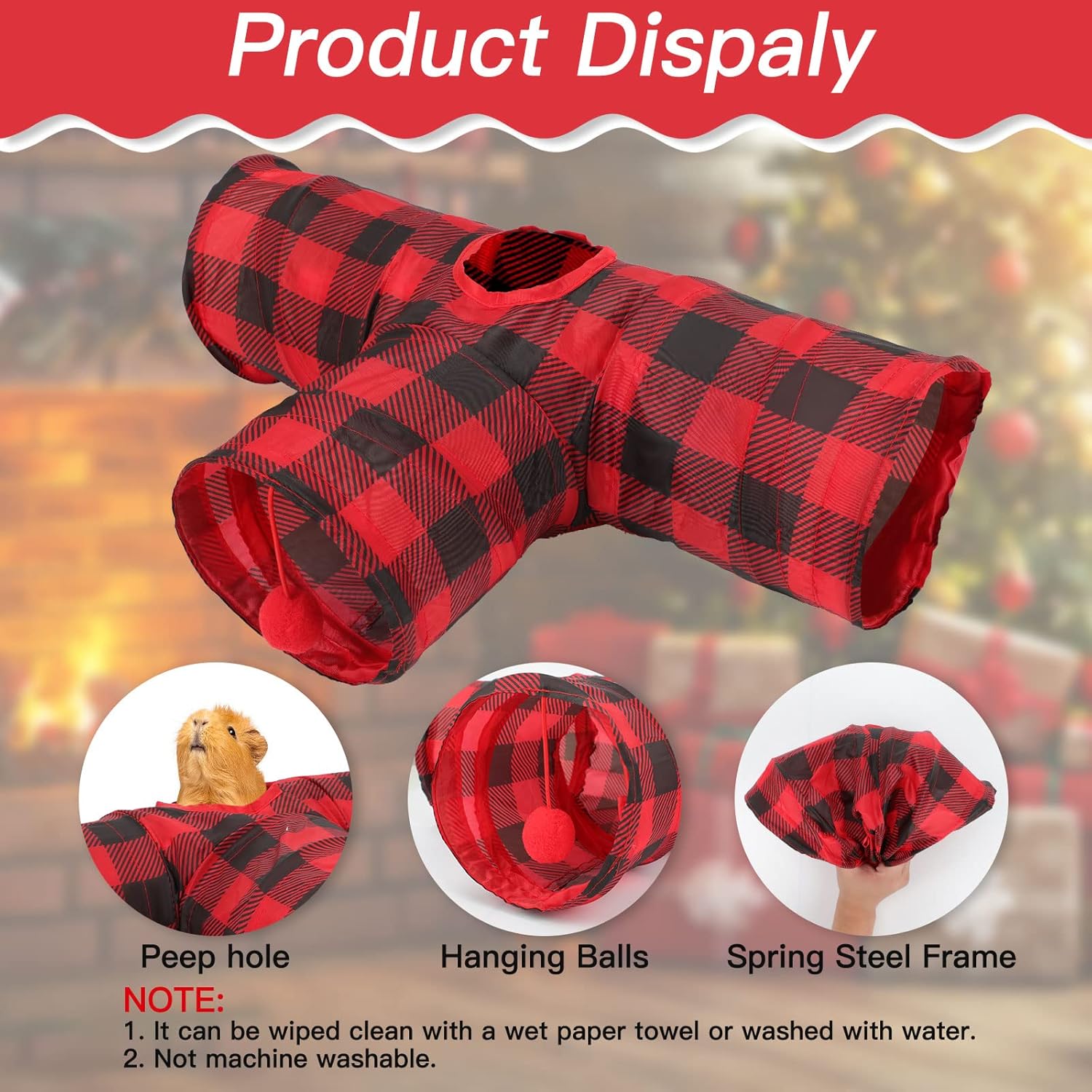 • 🐹【Special Design of Guinea Pig Tubes】Classic plaid pattern, fashionable and timeless. The peephole design of the guinea pig hide aways allows you to very closely observe your pets playing in it. In addition, we can also use interactive toys to interact with small pets through the peephole in the middle. There is also a hanging ball added to the front exit to add to the fun of playing.