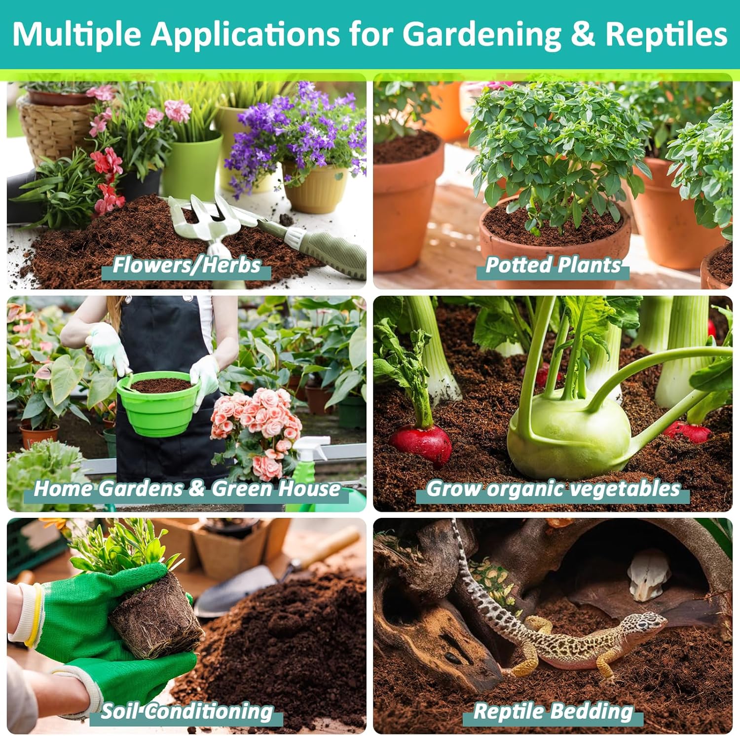 • Wide Application: Suitable for all gardening applications, potted plants, grow microgreens, container gardens, raised garden beds, indoor plants, flowers, vegetables, herbs; Also suitable for bedding of various reptiles, it worked great for making organic compust; Tips: When mixing with water to hydrate make sure to start out slowly so you achieve the consistency you want
