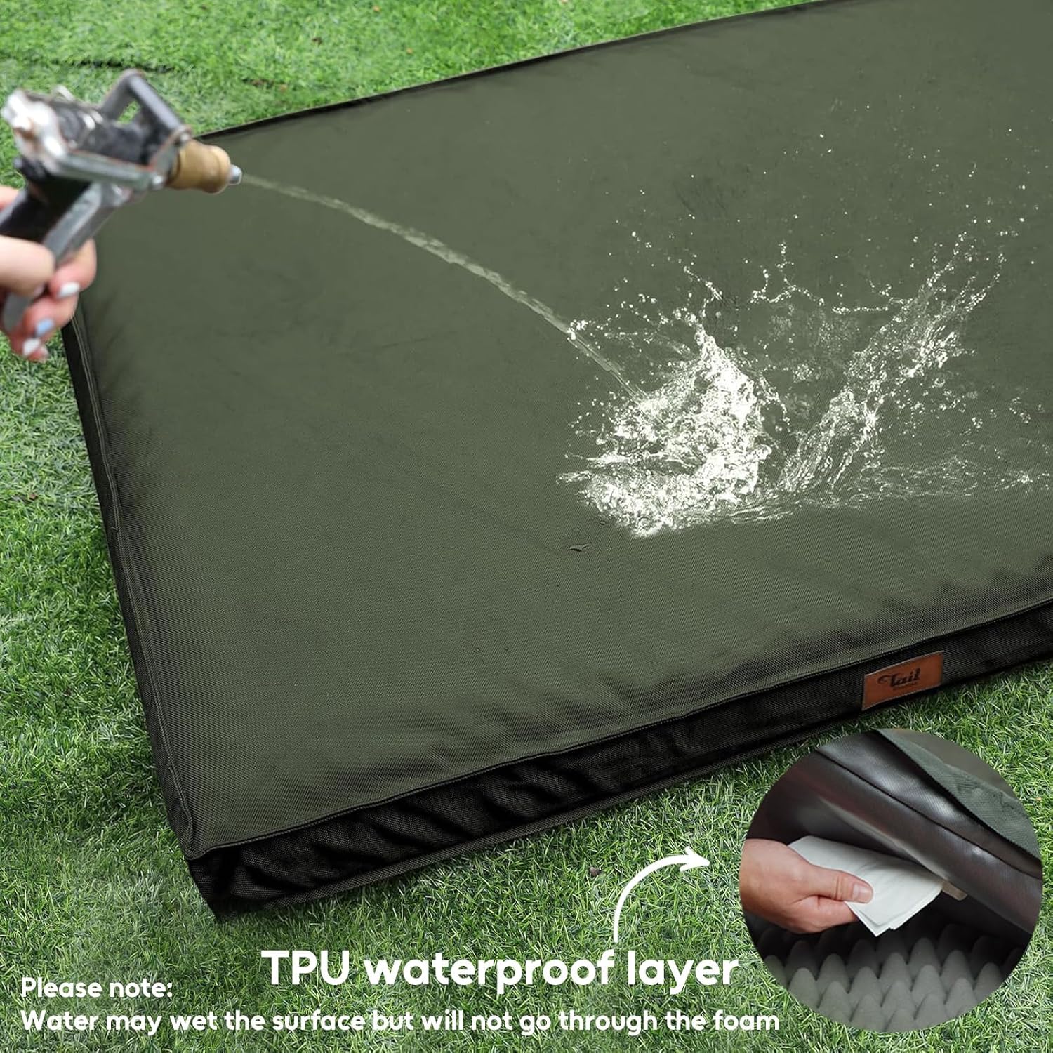 Outdoor All Weather Large Dog Bed, Waterproof Dog Bed for Large Dogs, Orthopedic Egg Foam Pet Bed with Washable and Removable Oxford Cooling Cover, Dark Green