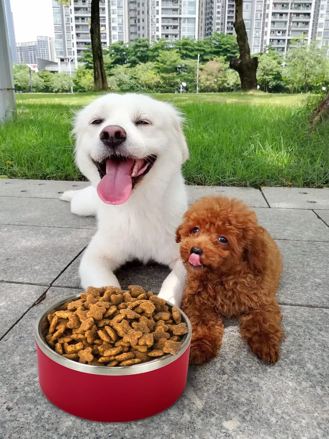 • STAINLESS STEEL DOG BOWLS-Our food and water bowls for dogs are made of double wall insulation and 304 food grade stainless steel, which is super long lasting, rustproof, scratchproof, environmental friendly. The outside of our non-slip dog bowls are made of Acrylonitrile Butadiene Styrene (ABS) for more durability.